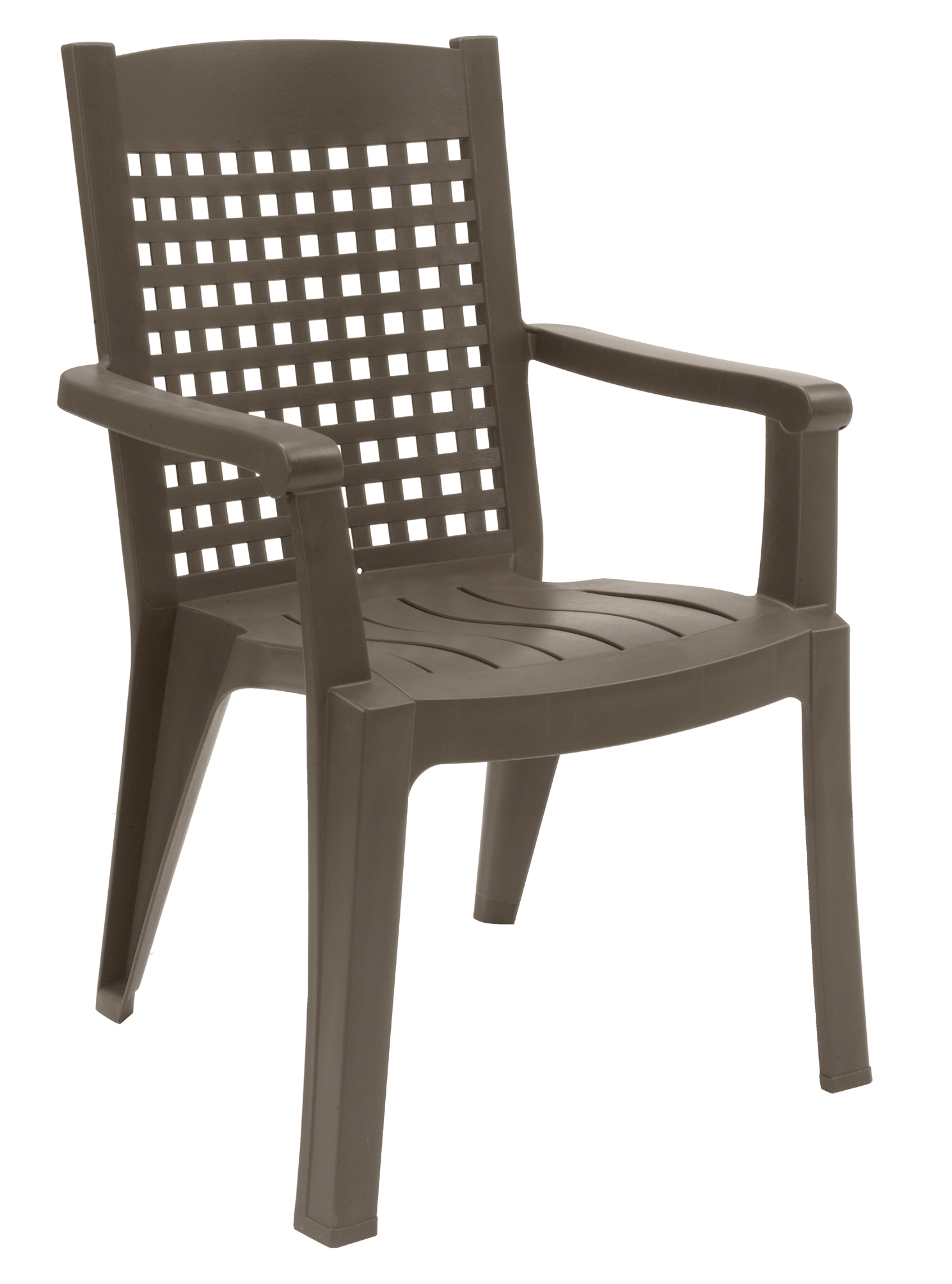 The back is made of wide strips arranged in an irregular plait with a handicraft look, evoking old-time furniture made of wrought iron.