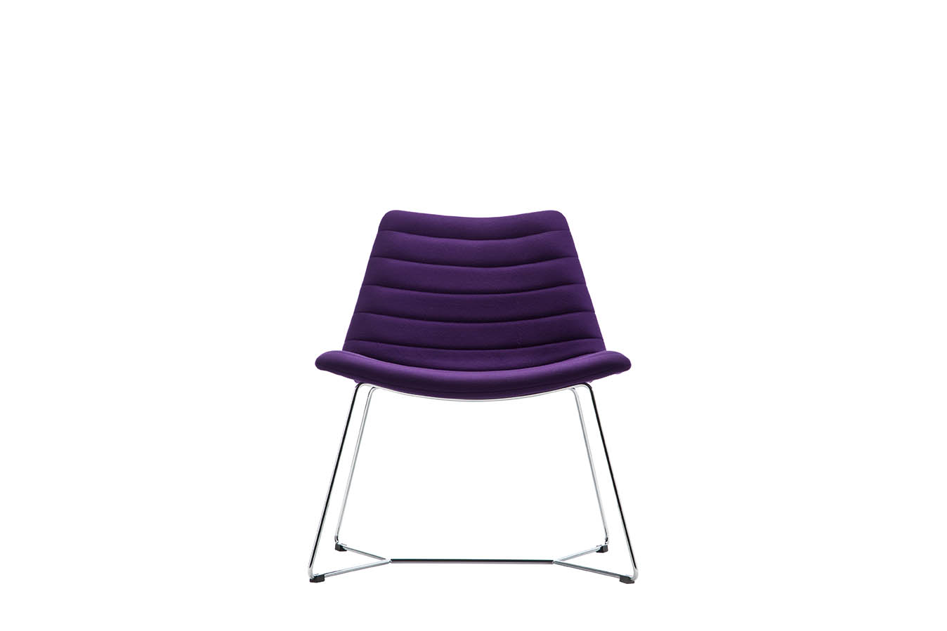 Chair, armchair, stool, fix or swivel lounge chair with wooden structure, chrome or painted steel. Upholstered shell.