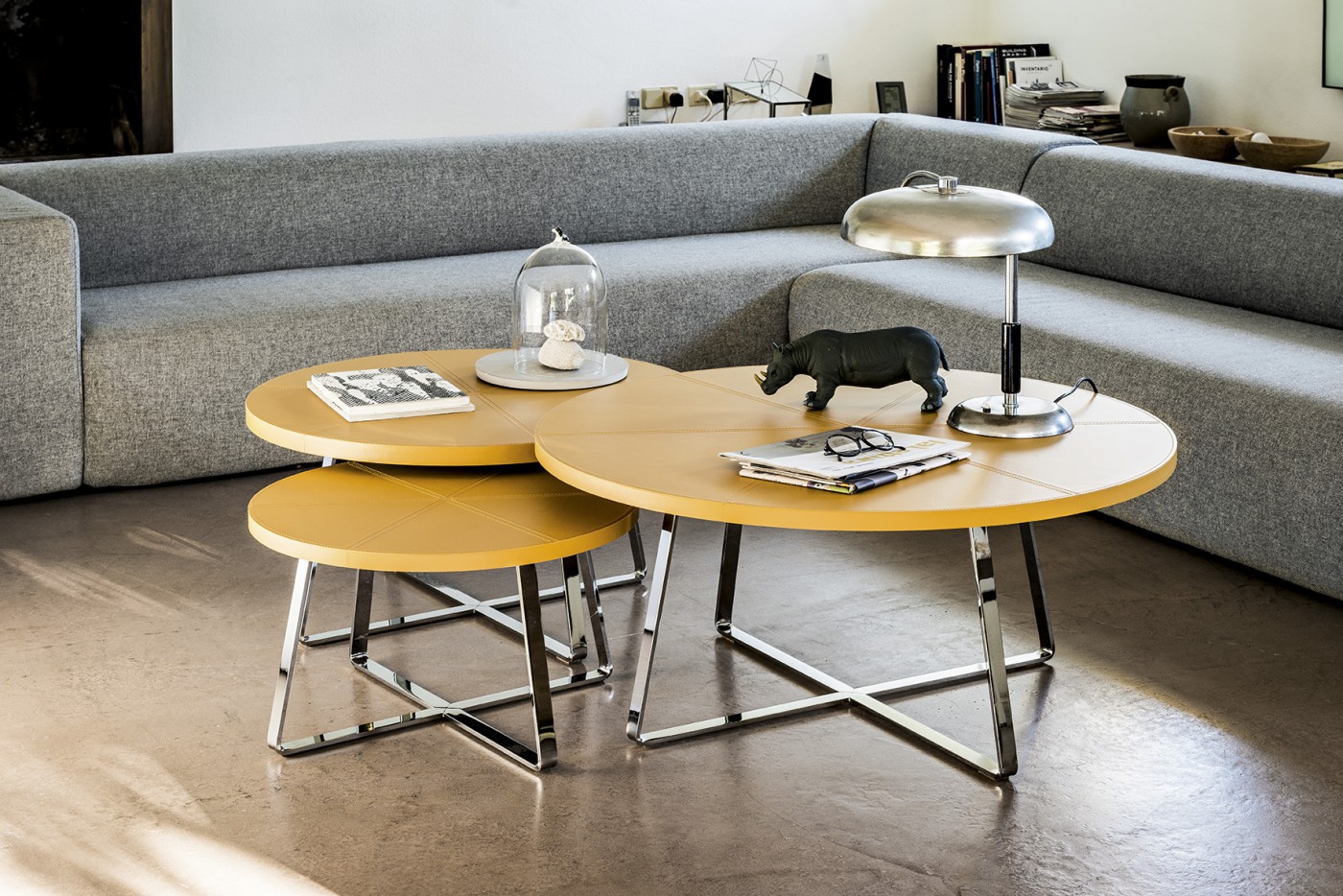 The Dj coffee table is available in three different sizes: Ø100 cm, Ø80 cm or Ø60 cm.