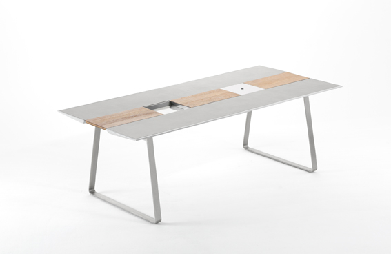 Table runners (optional) in Corian®, HPL, teak or lacquered aluminium (22 colours).