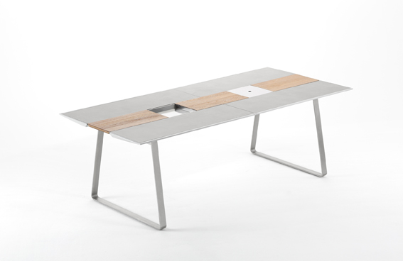 Stainless steel trays are available to accessorise with the Extrados Extension table range.