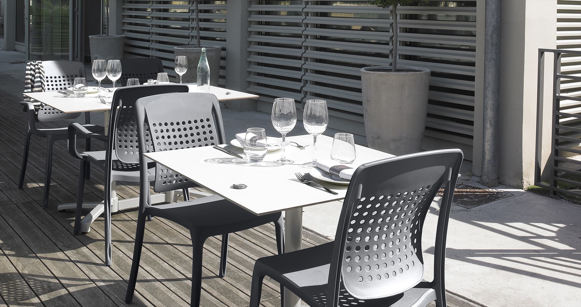 The FACTORY chair has a modern design, flexible back and strong resistance.