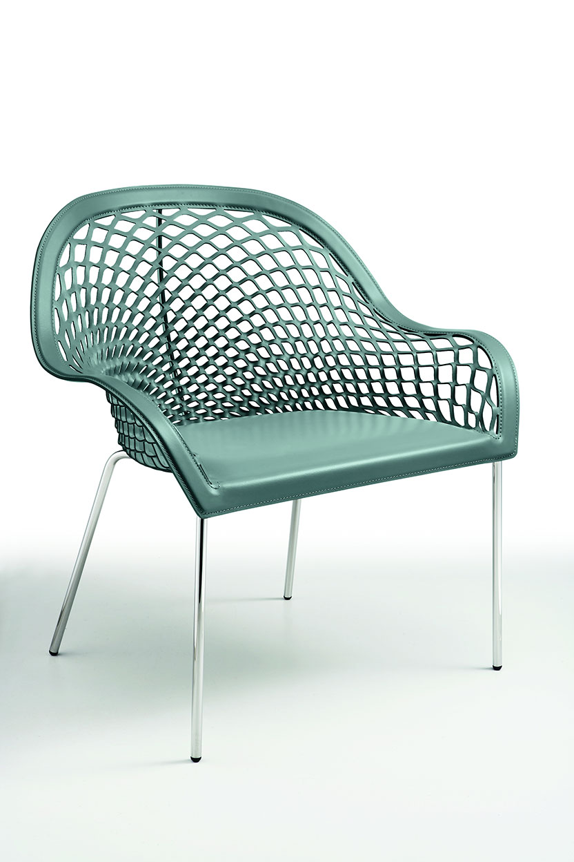 Lounge chair with chrome or painted steel or black nickel frame. Thicker hide seat.