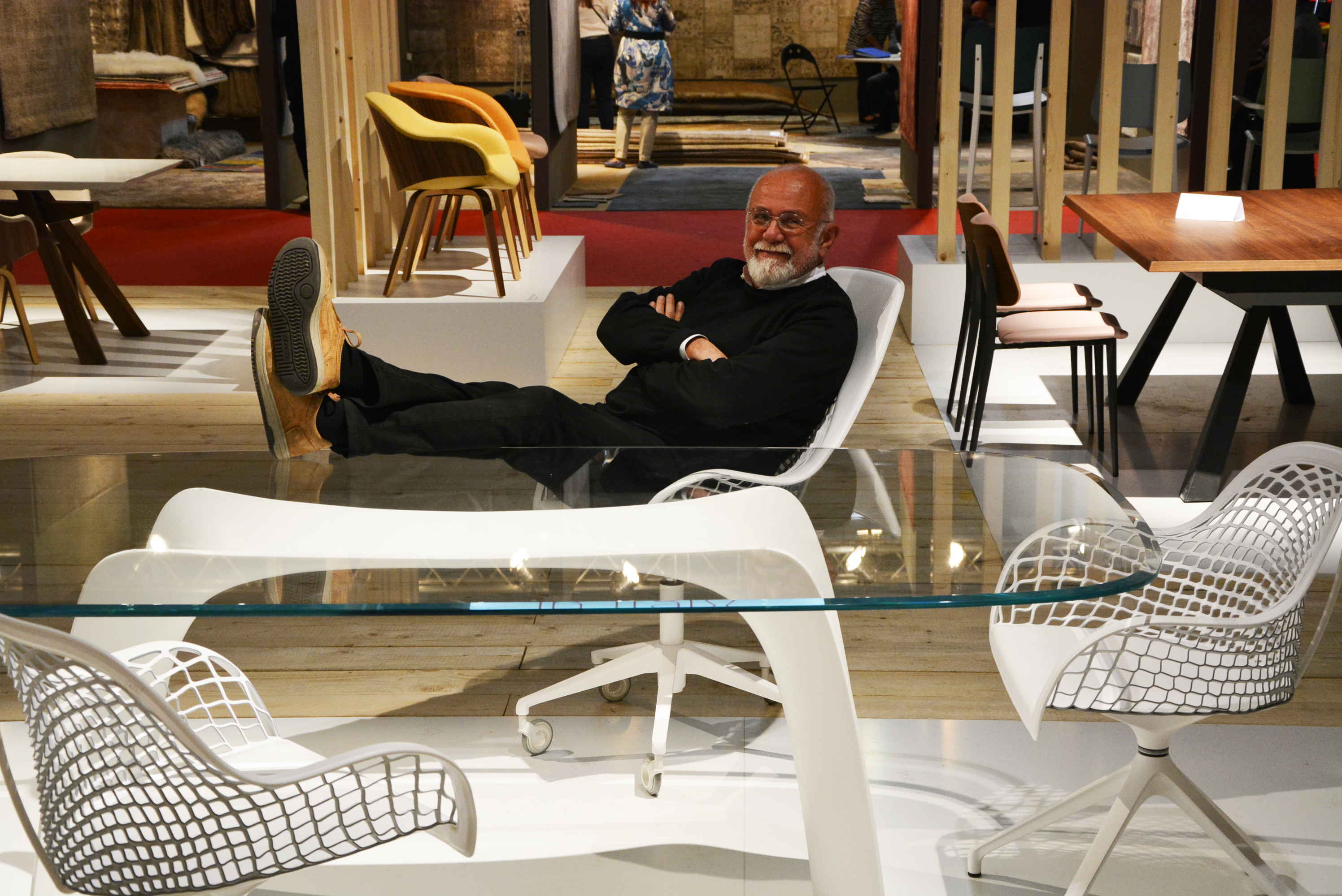 Hide Leather seat shell and innovative and strong laser-cut net of hide leather, stitched to the frame covering the backrest.