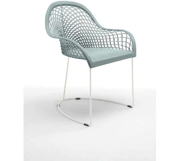 Armchair with sled base. Structure available in white painted, chrome or black nickel. Seat and backrest in hide.