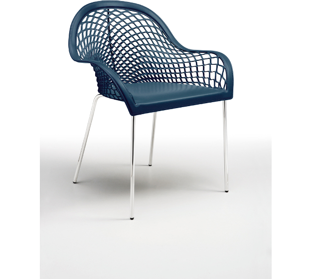 Lounge chair with chrome or painted steel or black nickel frame. Thicker hide seat.