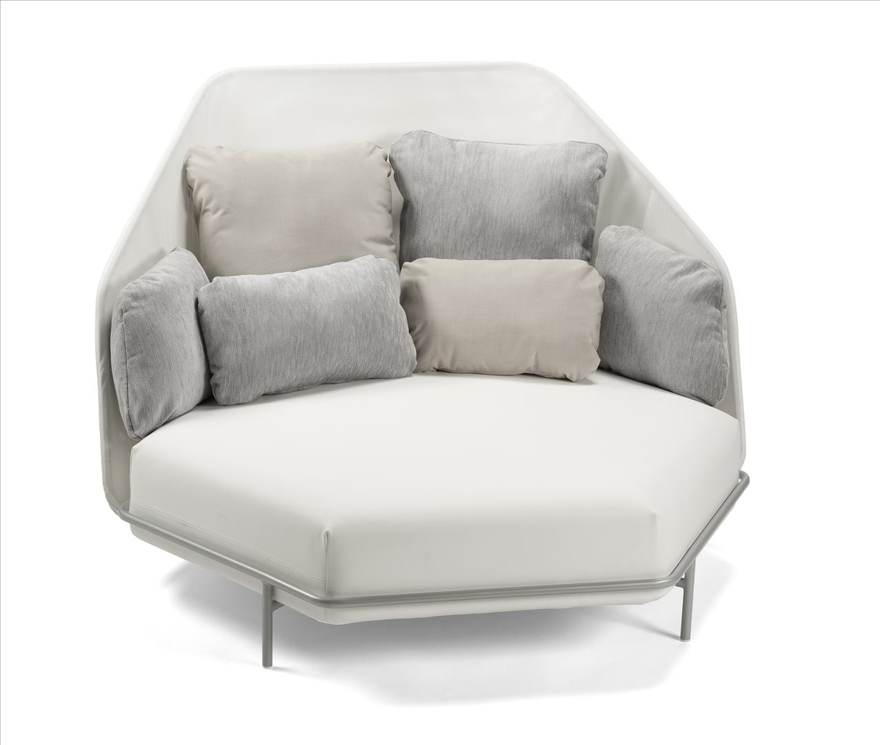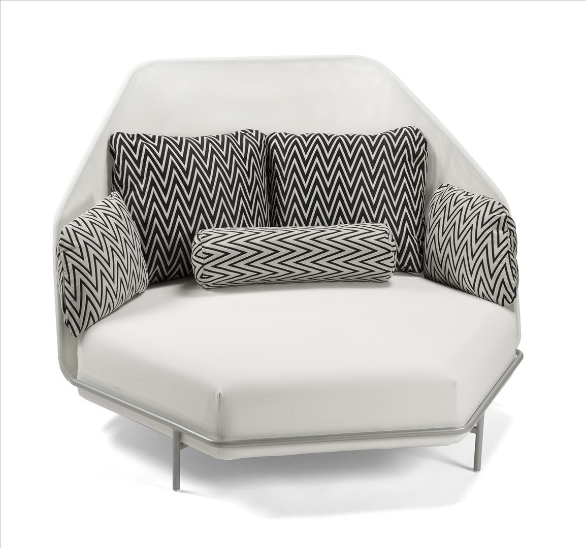 Designed by Fabric Berrux; this modular series of lounge chairs, ottomans, low tables, sofas and daybeds; allows for a truly versatile and social engagement of Indoor / Outdoor luxury designs … at its best !