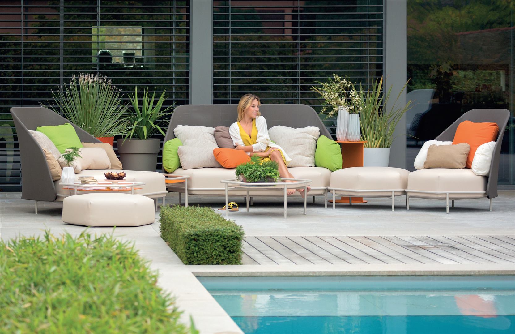 Designed by Fabric Berrux; this modular series of lounge chairs, ottomans, low tables, sofas and daybeds; allows for a truly versatile and social engagement of Indoor / Outdoor luxury designs … at its best !