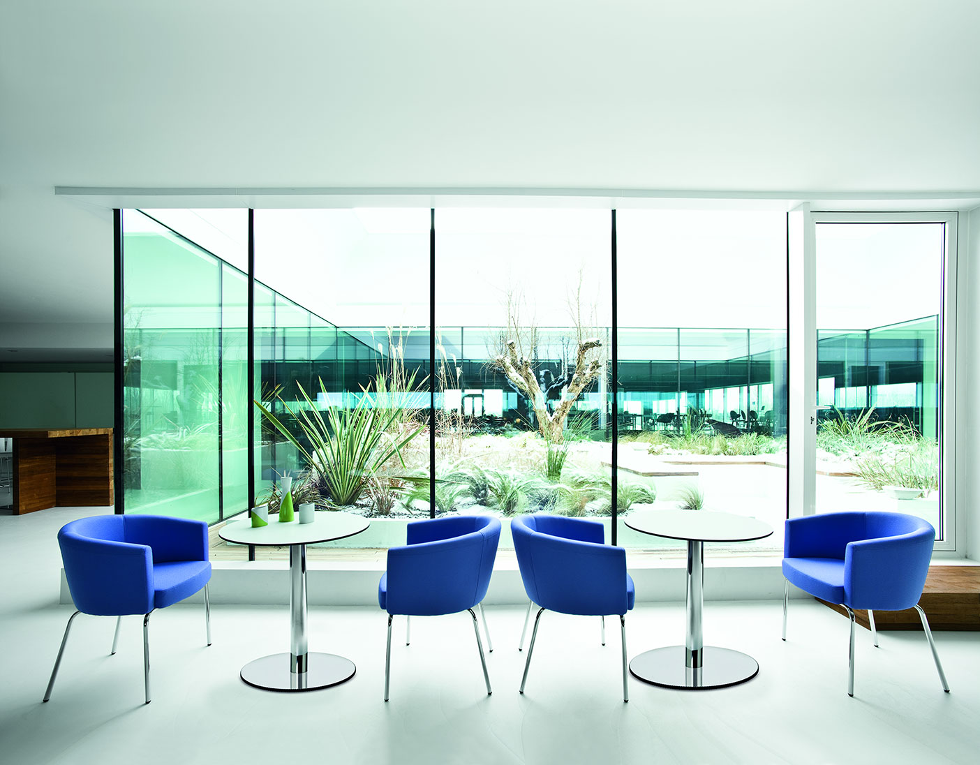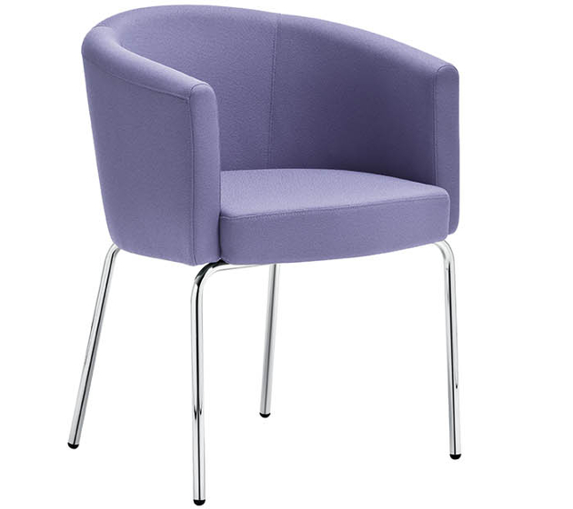 Armchair with chrome four leg frame, shell upholstered in leather, ecoleather, fabric or custom’s fabric.