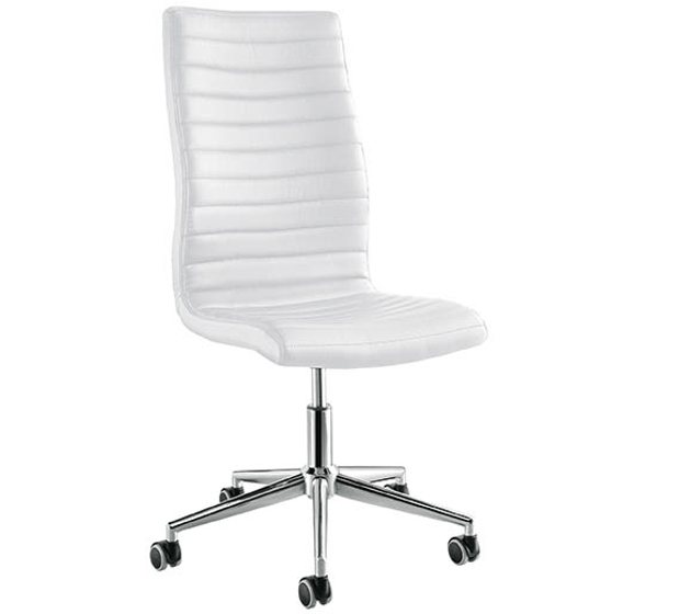 Task chair with 5-way swivel chrome base. Fitted with a gas-lift mechanism for height adjustment. Seat upholstered in leather, ecoleather, fabric or custom fabric. Height adjusts from 105cm to 114cm; Seat Height adjusts from 48cm to 57cm.