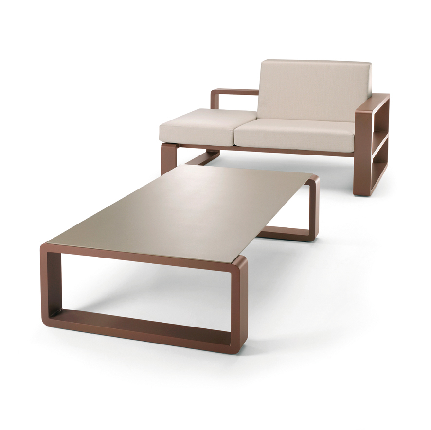 Lacquered aluminium frame (22 colours); Glacier White Corian® or Glazed aluminium top (9 colours).