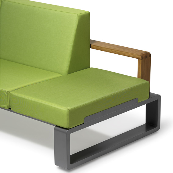 Lacquered aluminium frame (22 colours); Aluminum or Teak backrest.