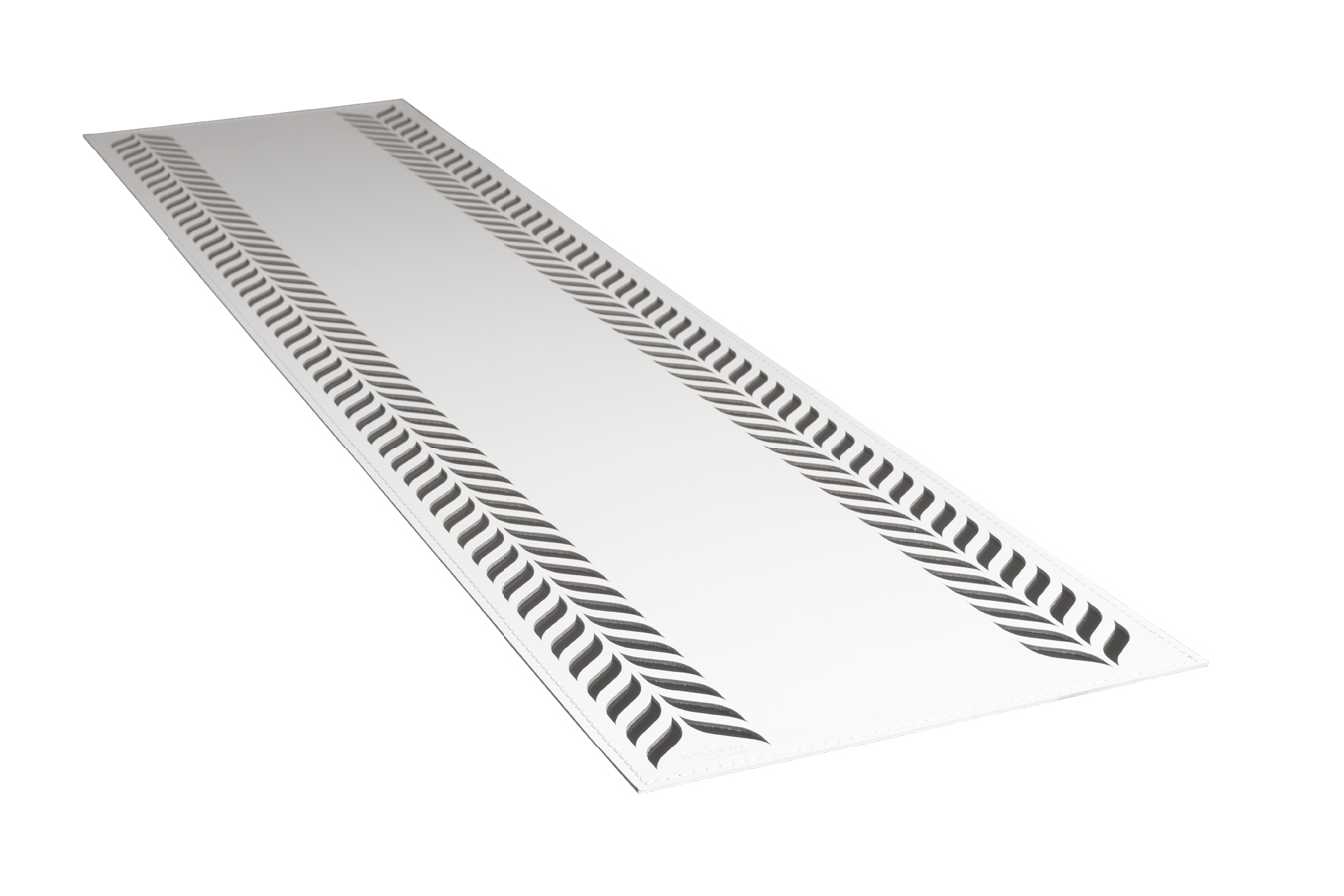 Centrepiece in stitched regenerated leather.