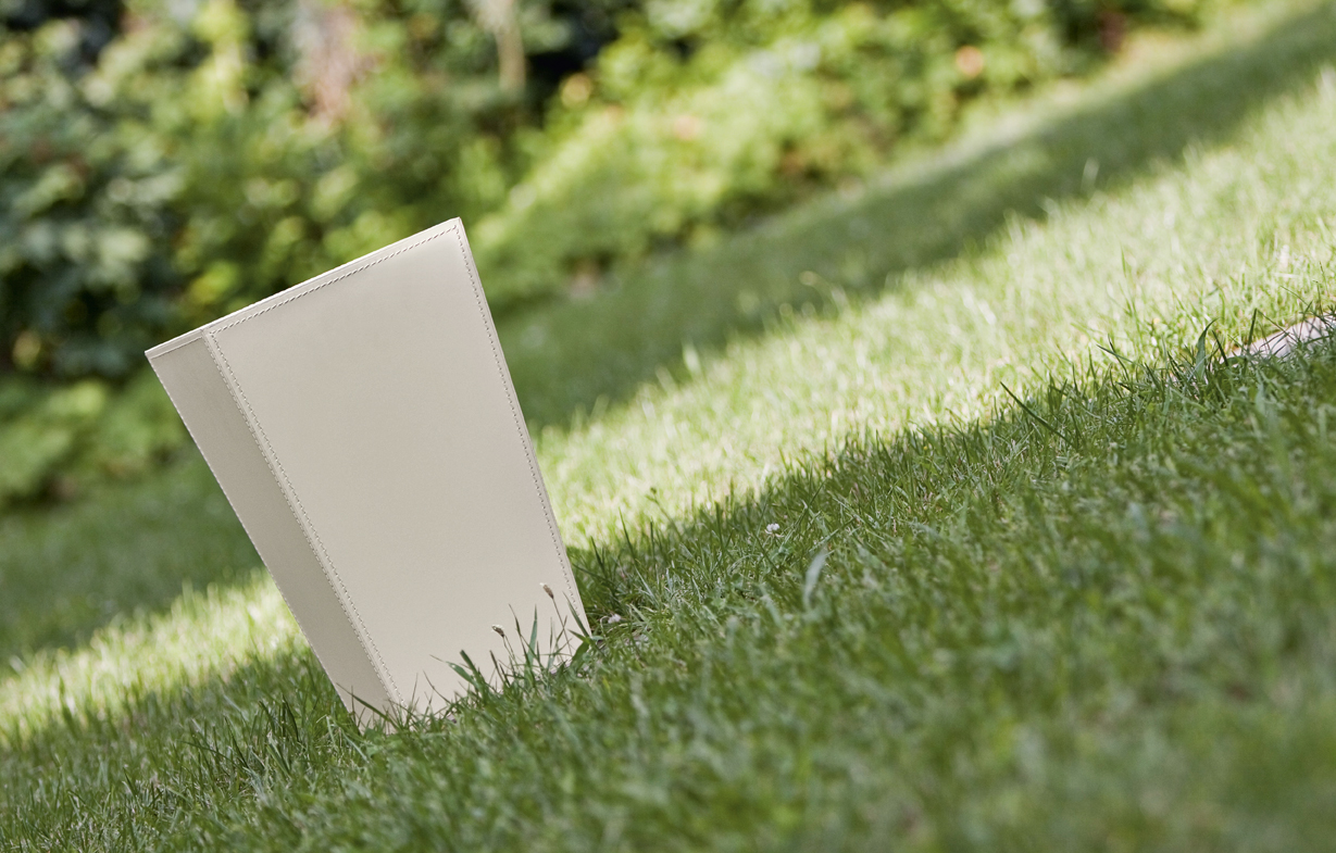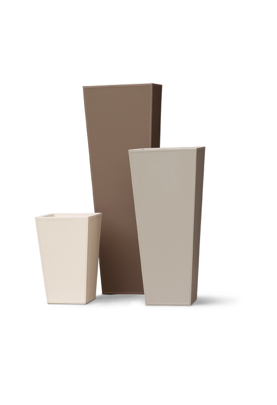 Vase. Wooden structure covered with stitched regenerated leather. Available in three sizes. Not suitable for liquids.