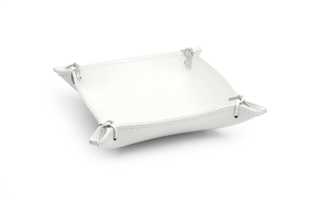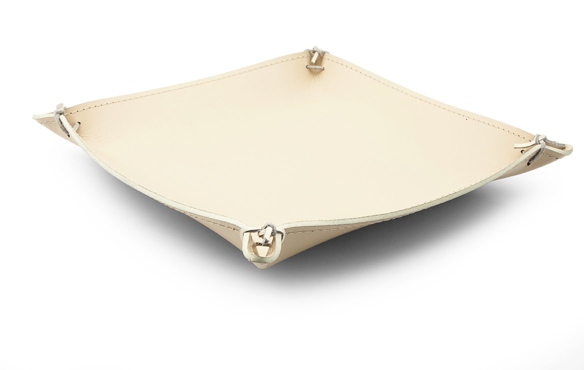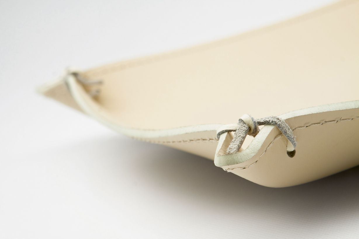 Centrepiece in stitched regenerated leather, available in three shapes.