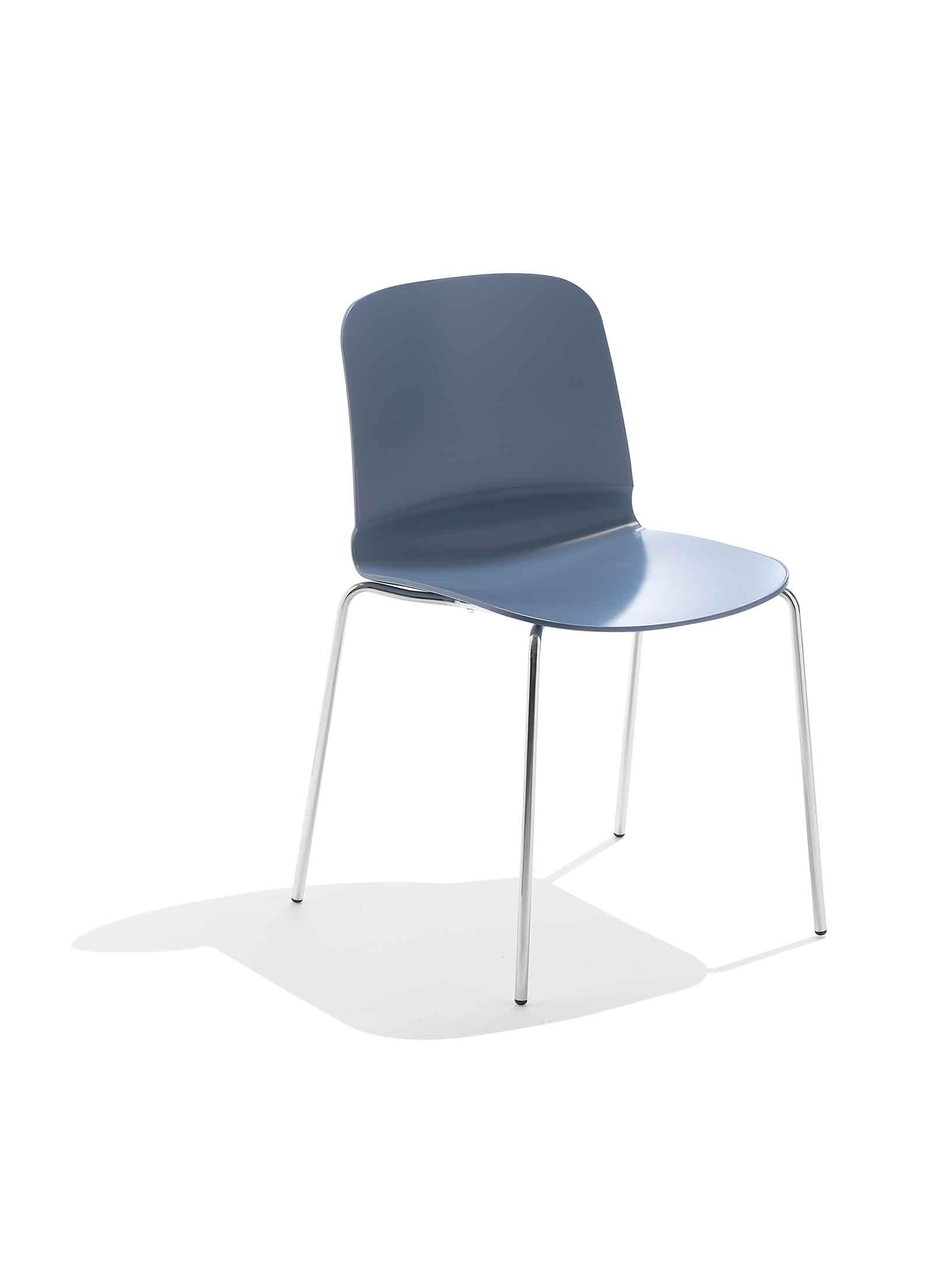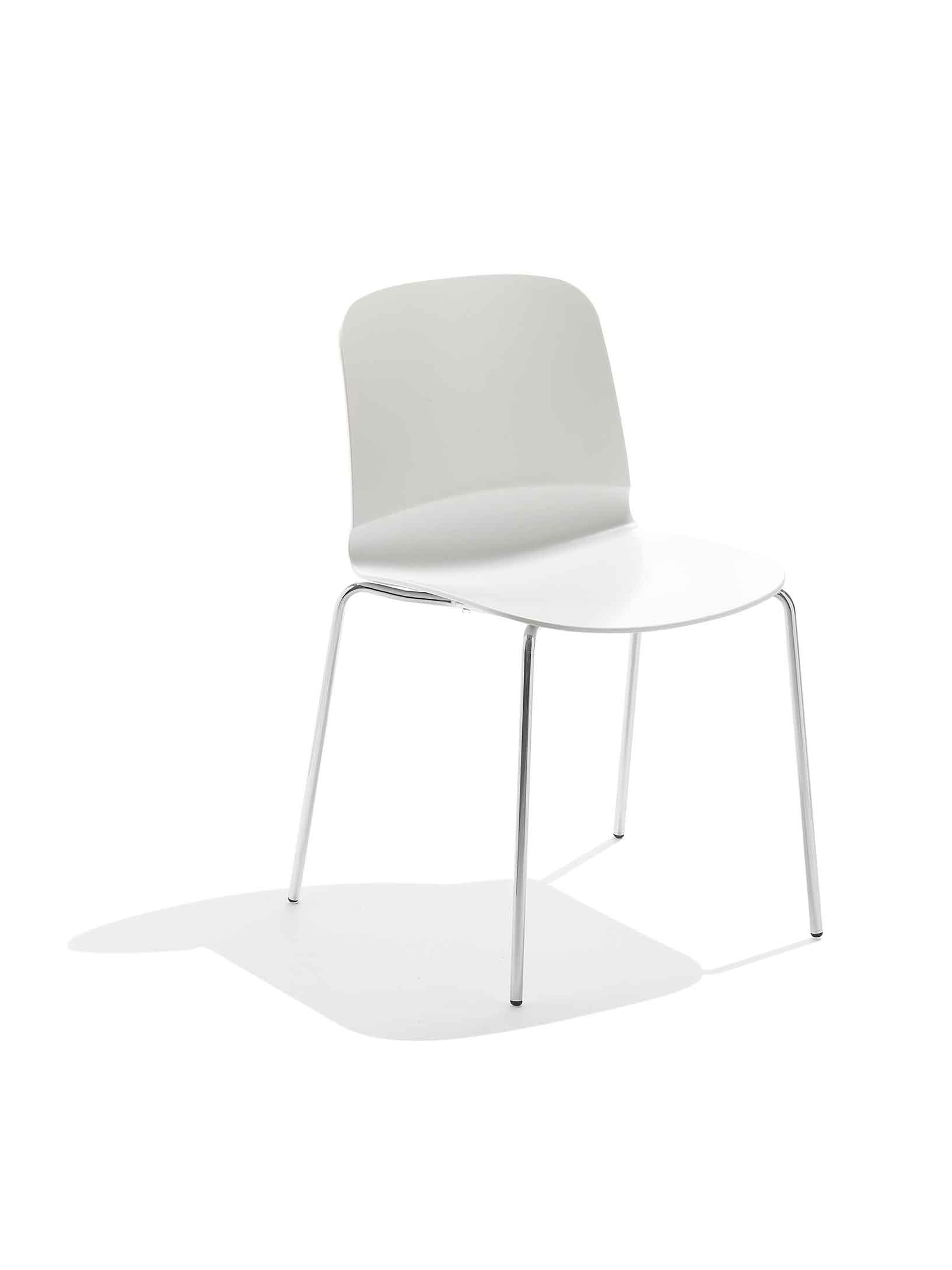 Liu is a stackable chair, available with plastic or upholstered shell; suitable for both indoor or outdoor use. Available in chair, armchair and 5-spoke chair. Stackable chair with four leg frame in white, sand, aluminium painted or chrome. Shell in Restylon® or upholstered in leather, eco-leather, fabric or custom fabric. Restylon®/steel version suitable for outdoor use. Stackable up to four pieces.