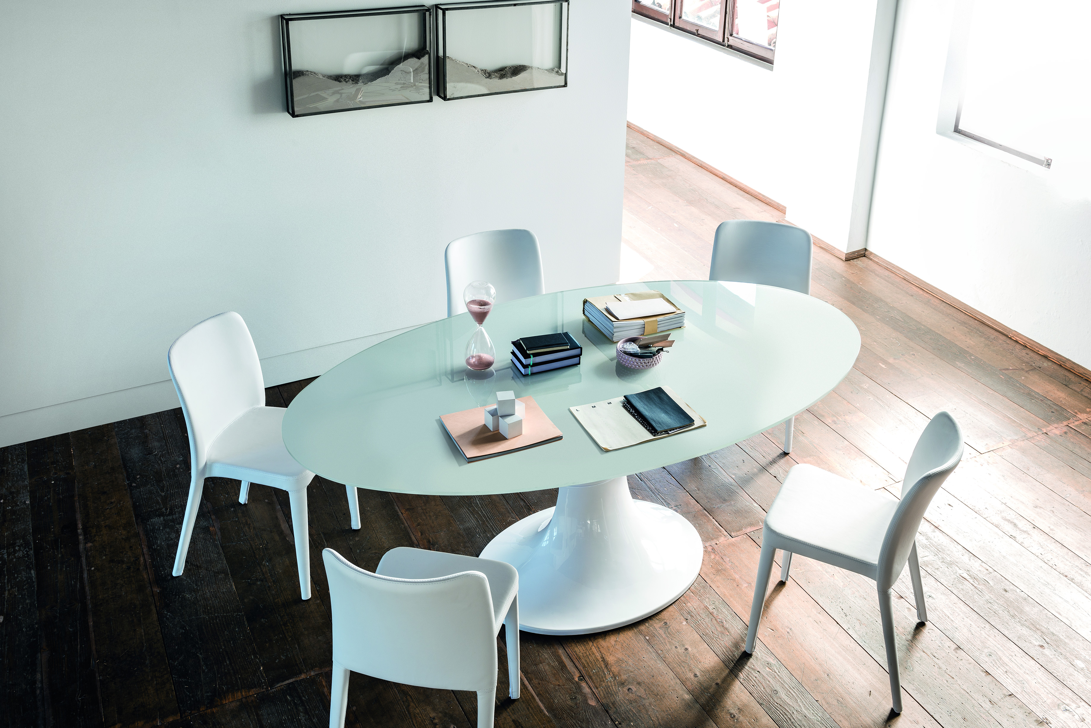 Structure available in glossy polycarbonate black or white, or upholstered in leather.