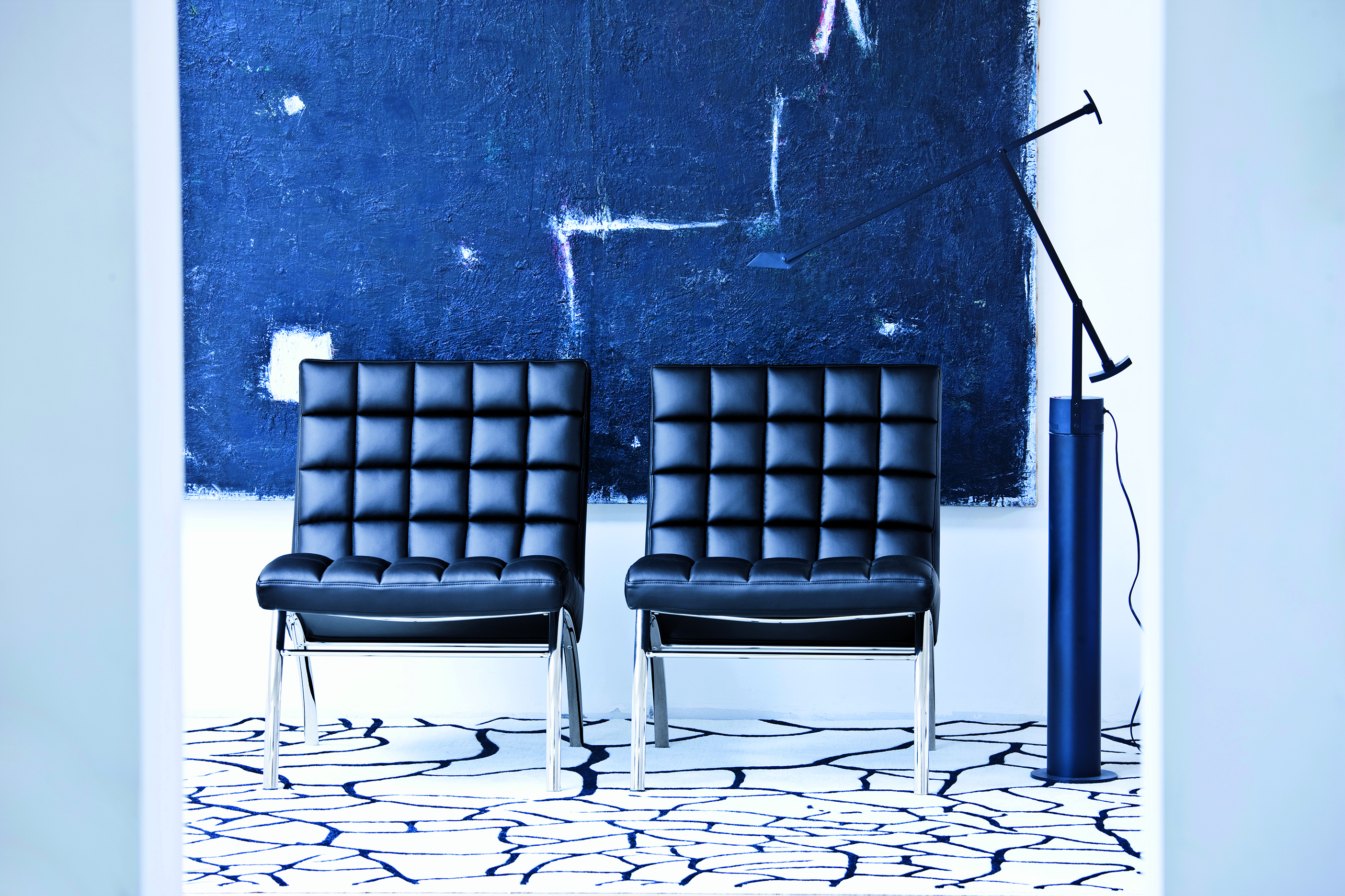 Marsiglia lounge armchair with four leg frame in chrome.