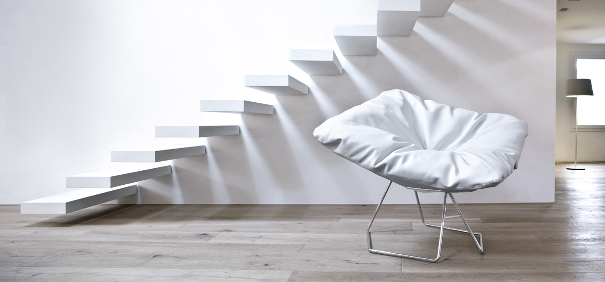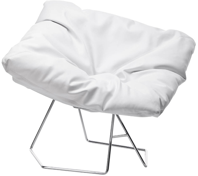 Mask lounge chair with chrome sled base. Seat upholstery available in leather, eco-leather, fabric or custom fabric.