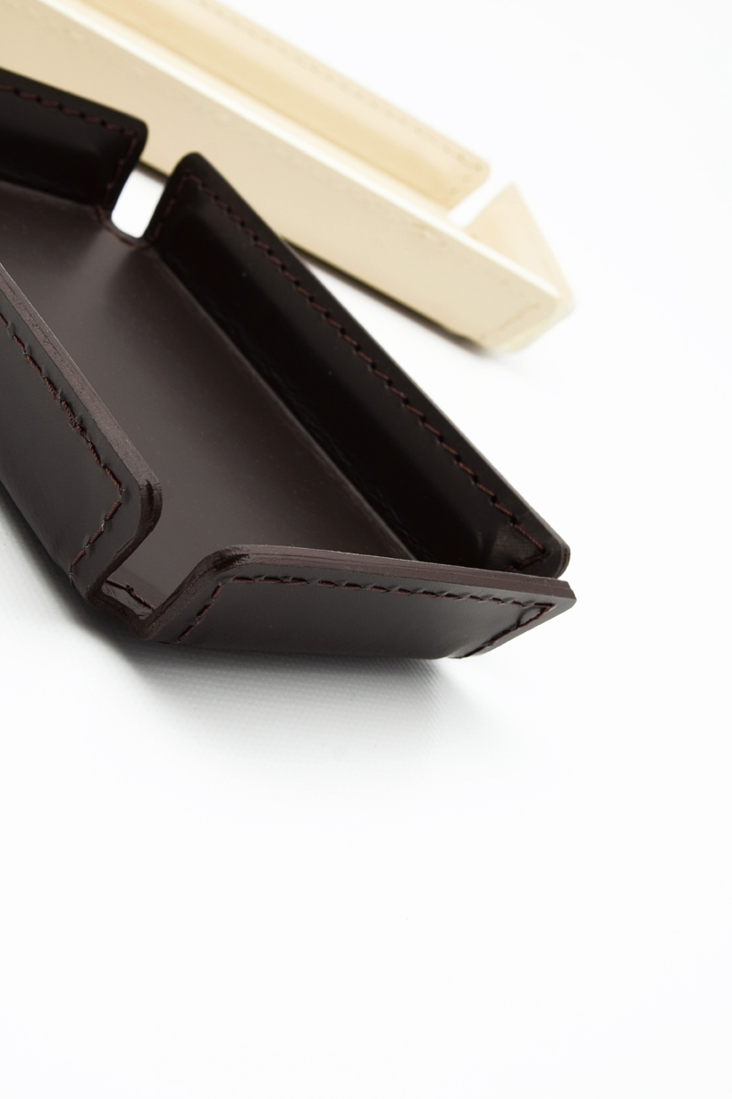 Tray. Inner metal covered with stitched regenerated leather. Available in four sizes