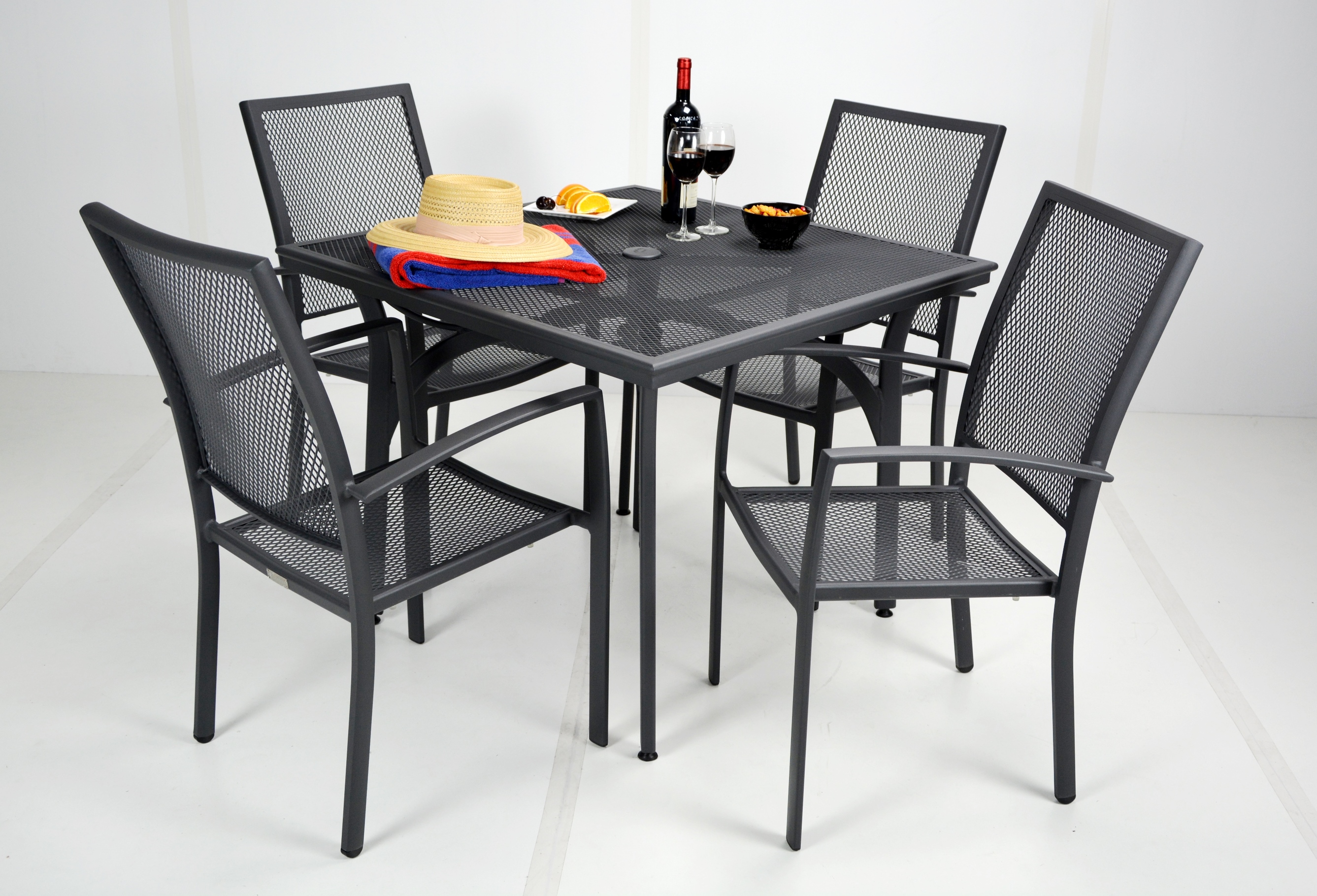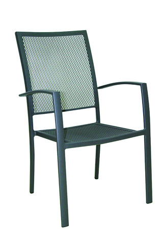 Powder coated aluminium frame with aluminium mesh seat and backrest.