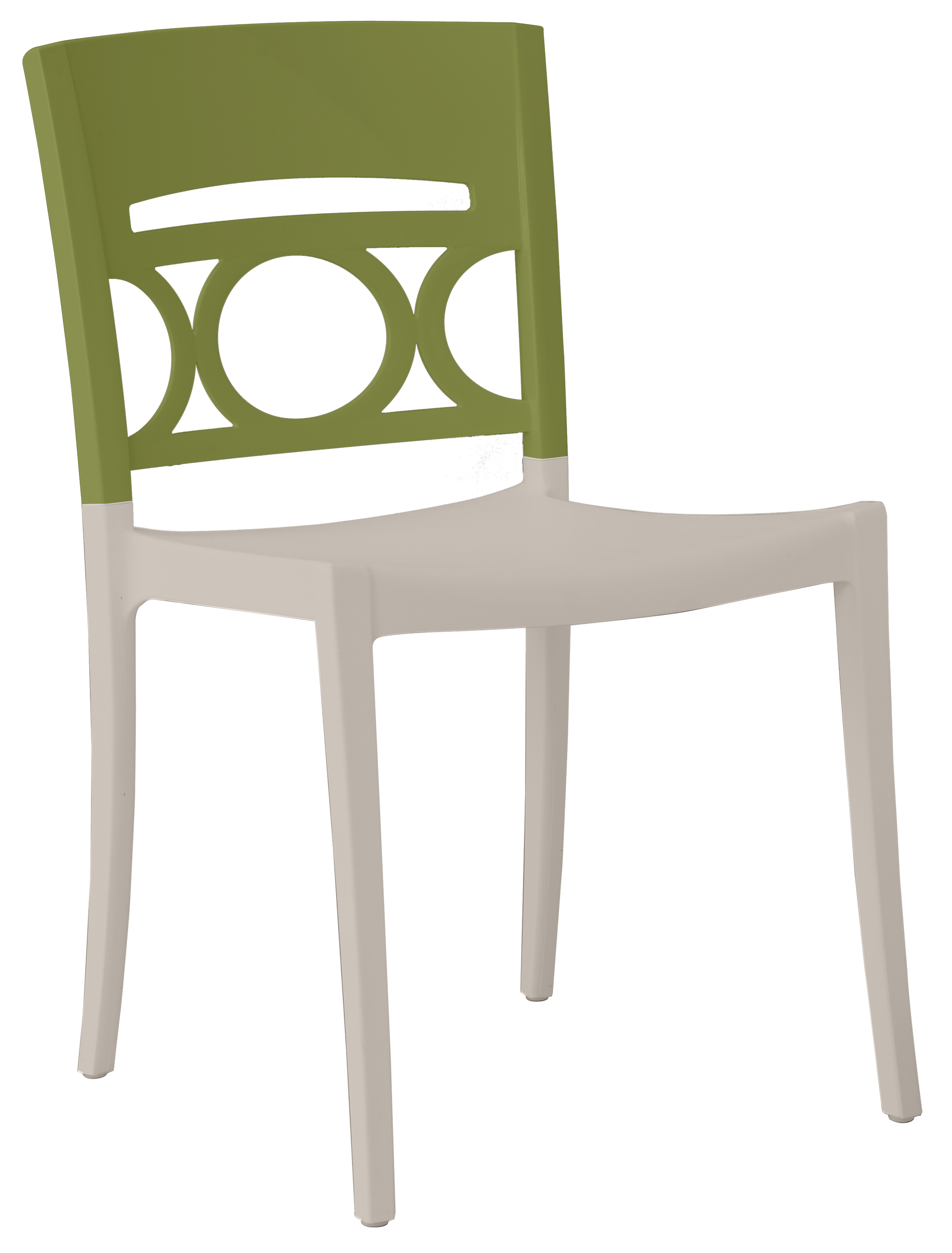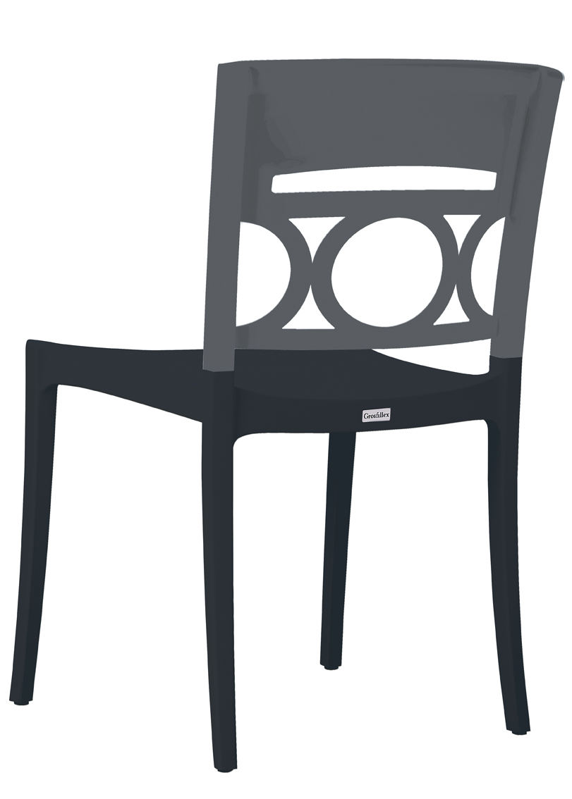 Polypropylene seat reinforced with fibreglass.