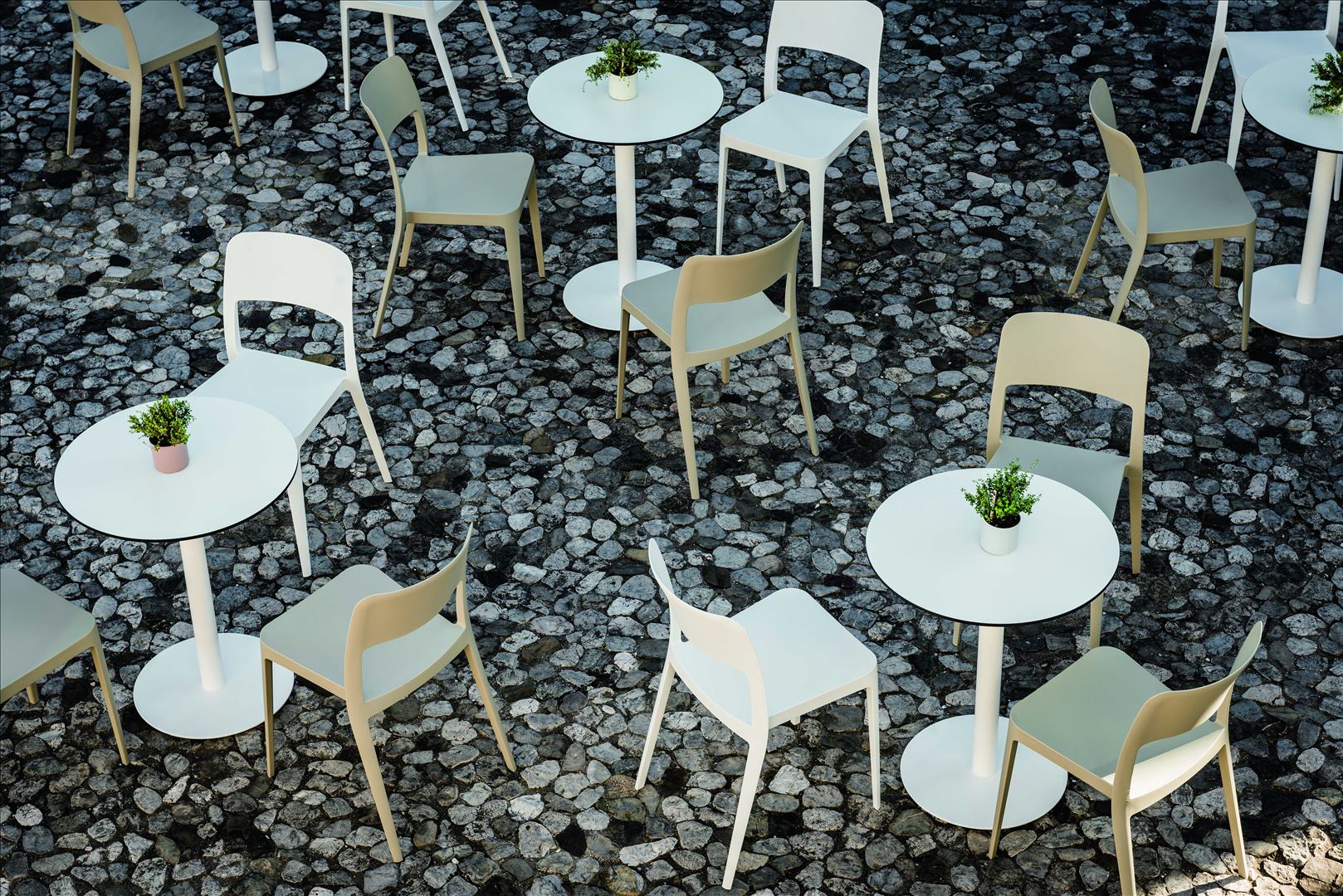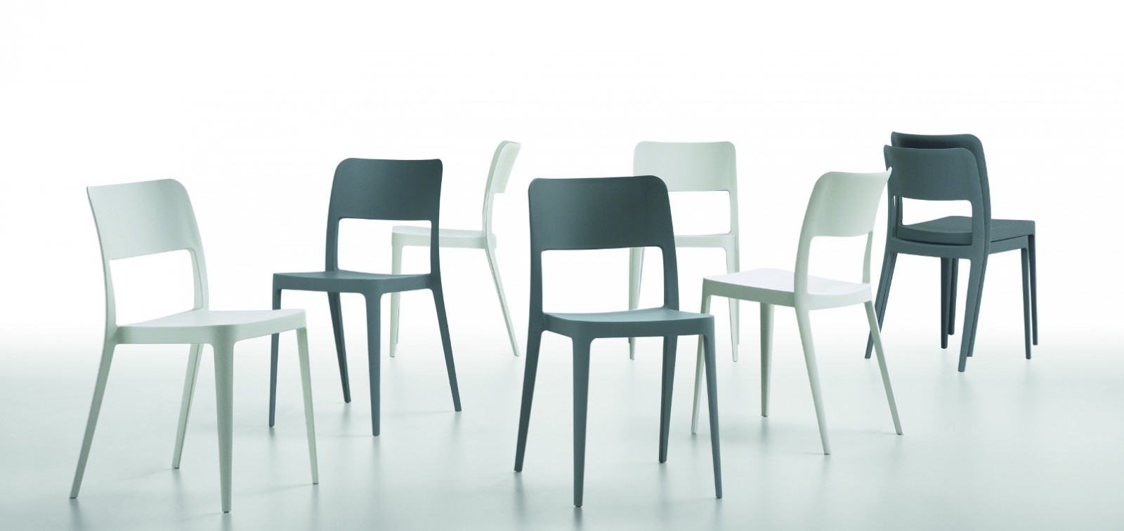 Nenè is the fresh Midj’s collection. The chair made of polypropylene is suitable for indoor and outdoor use, light and stackable. It’s available fully upholstered, in an armchair and an elegant wooden version. Available pads for seat and backrest and a removable cap. Nenè, offers all the advantages of a strong chair with an unexpected lightness. Nenè S is a stackable chair with four-legs frame, made in polypropylene. Suitable for outdoor use, it’s available in seven different colours. Stackable up to eight pieces.