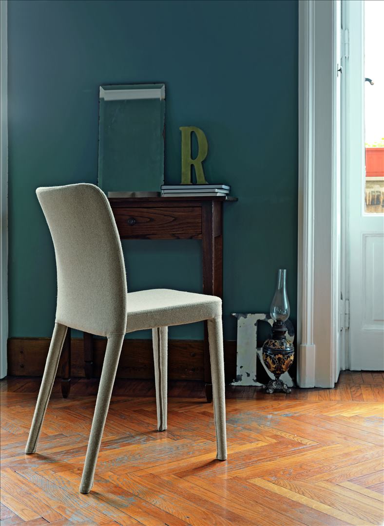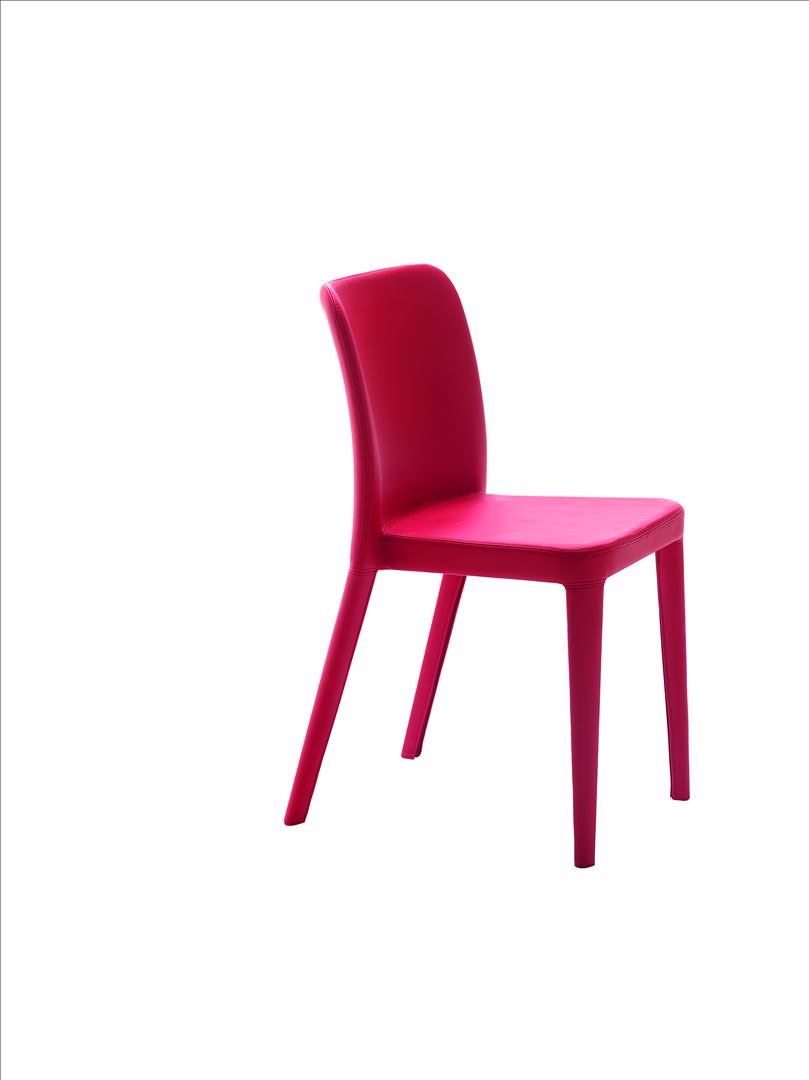 Nenè chair with four-leg base. Frame in polypropylene upholstered with leather, eco-leather, fabric or custom fabric, full backrest.