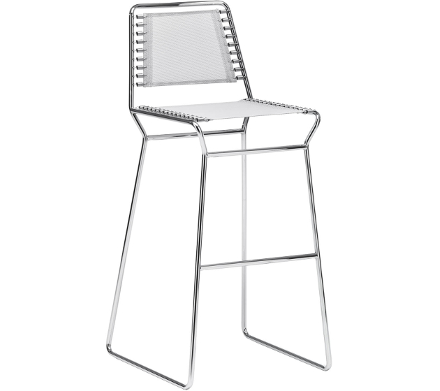 Nuda stool with sled base and chrome frame. Seat and backrest in hide, elastic and mesh. H65-CU Height is 95cm with a Seat Height of 66cm. H75 Height is 105cm with a Seat Height of 76cm.