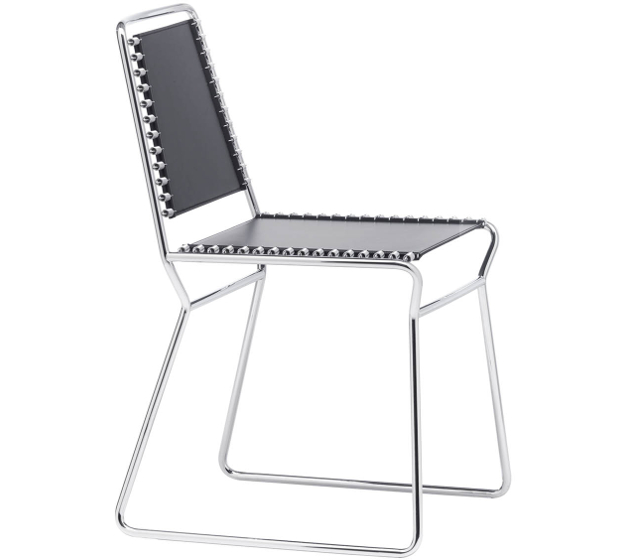 Nuda chair with sled base in chrome steel. Seat and backrest available in hide, elastic or mesh.