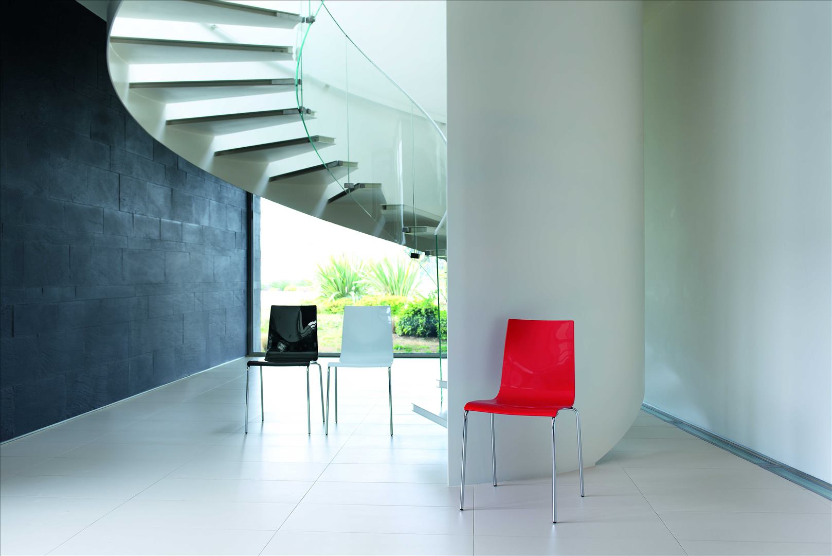 Available also with shell in wood finish dark oak or light oak. Restylon® version suitable for outdoor use. Stackable up to four pieces.