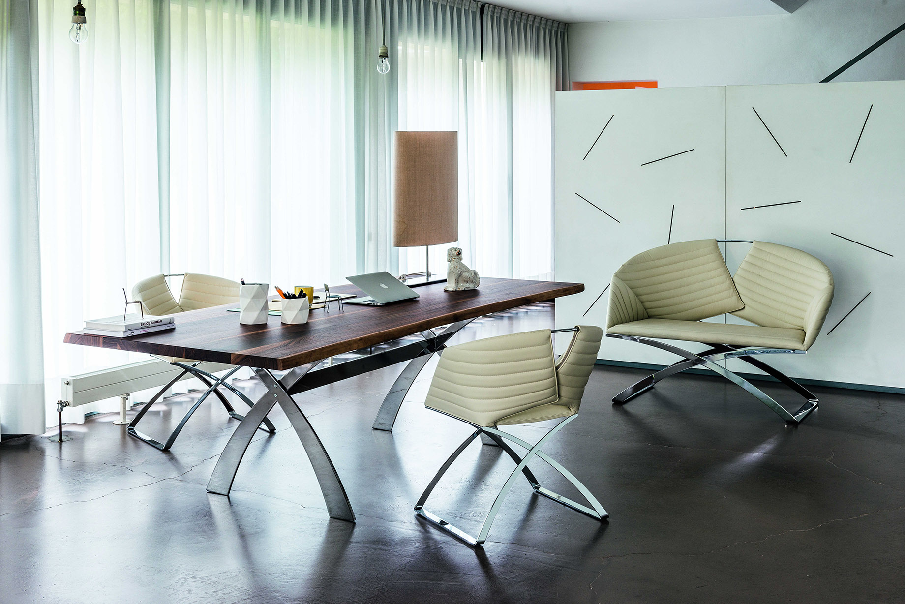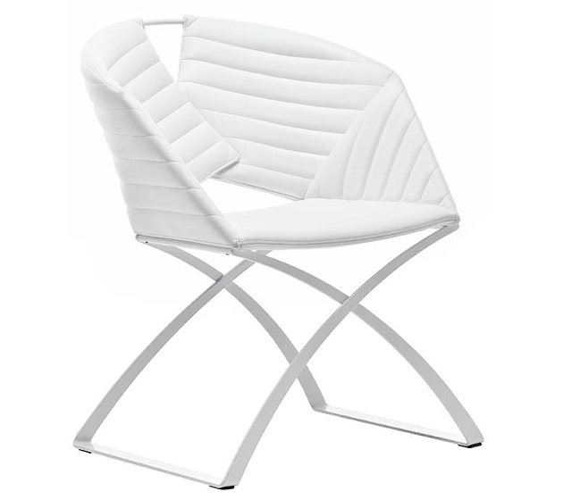 Armchair with sled base available in white painted, chrome or black nickel frame and legs.