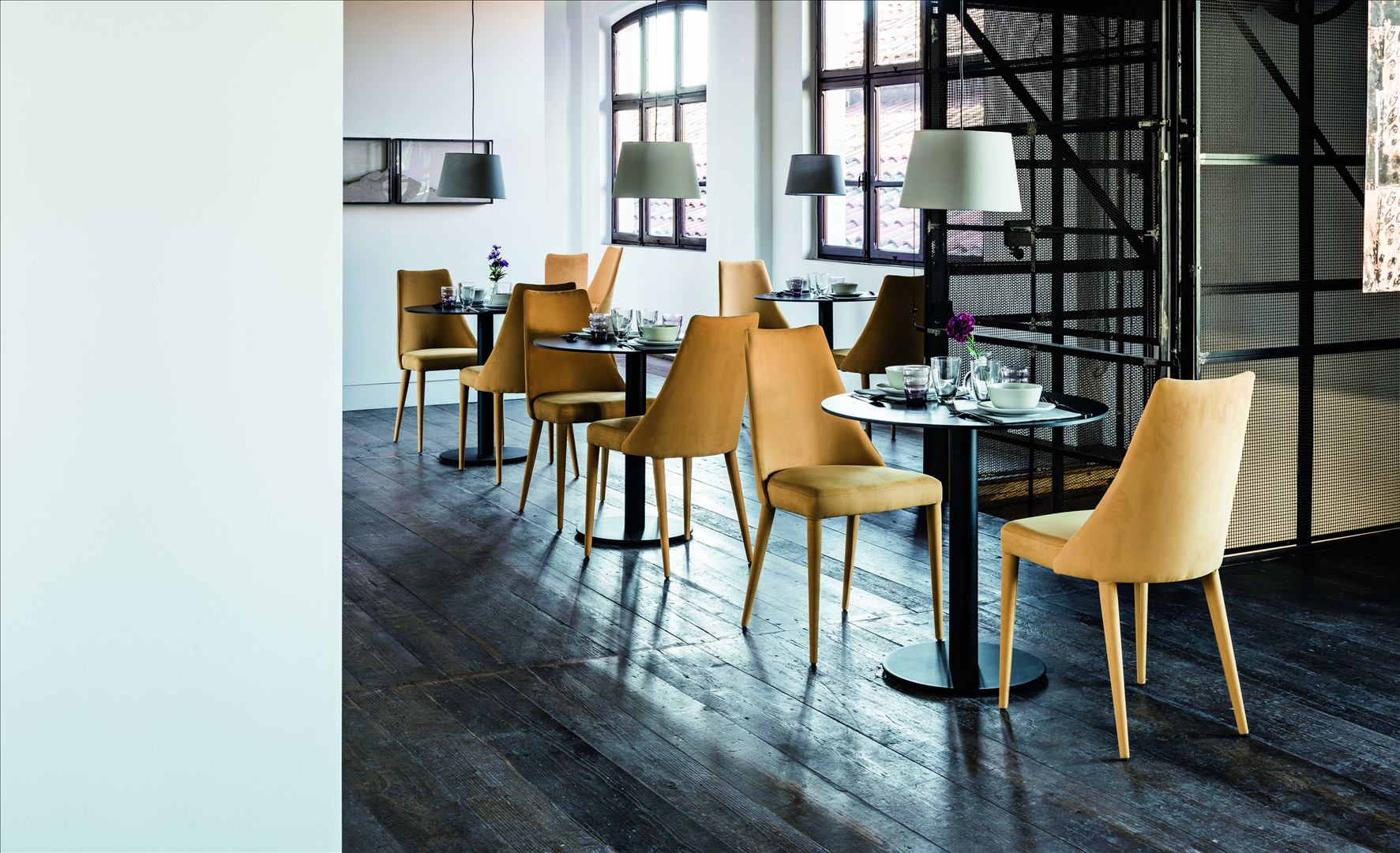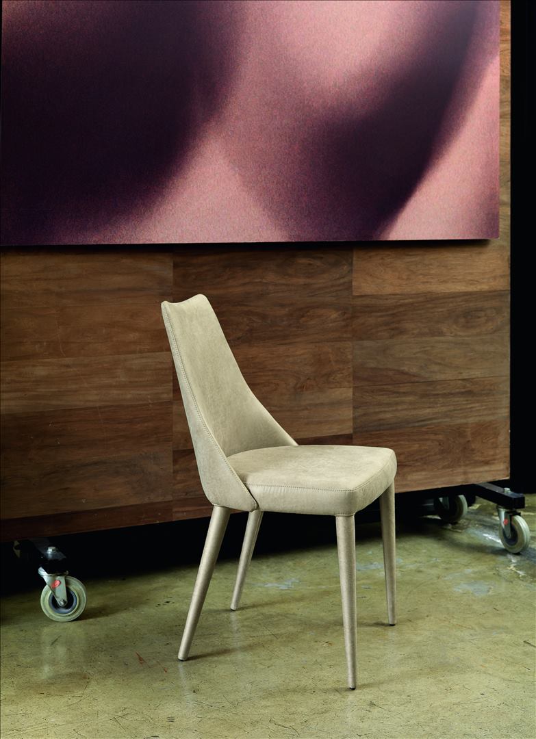 Chair with four-leg base with steel structure fully upholstered in leather, eco-leather, fabric or custom fabric.