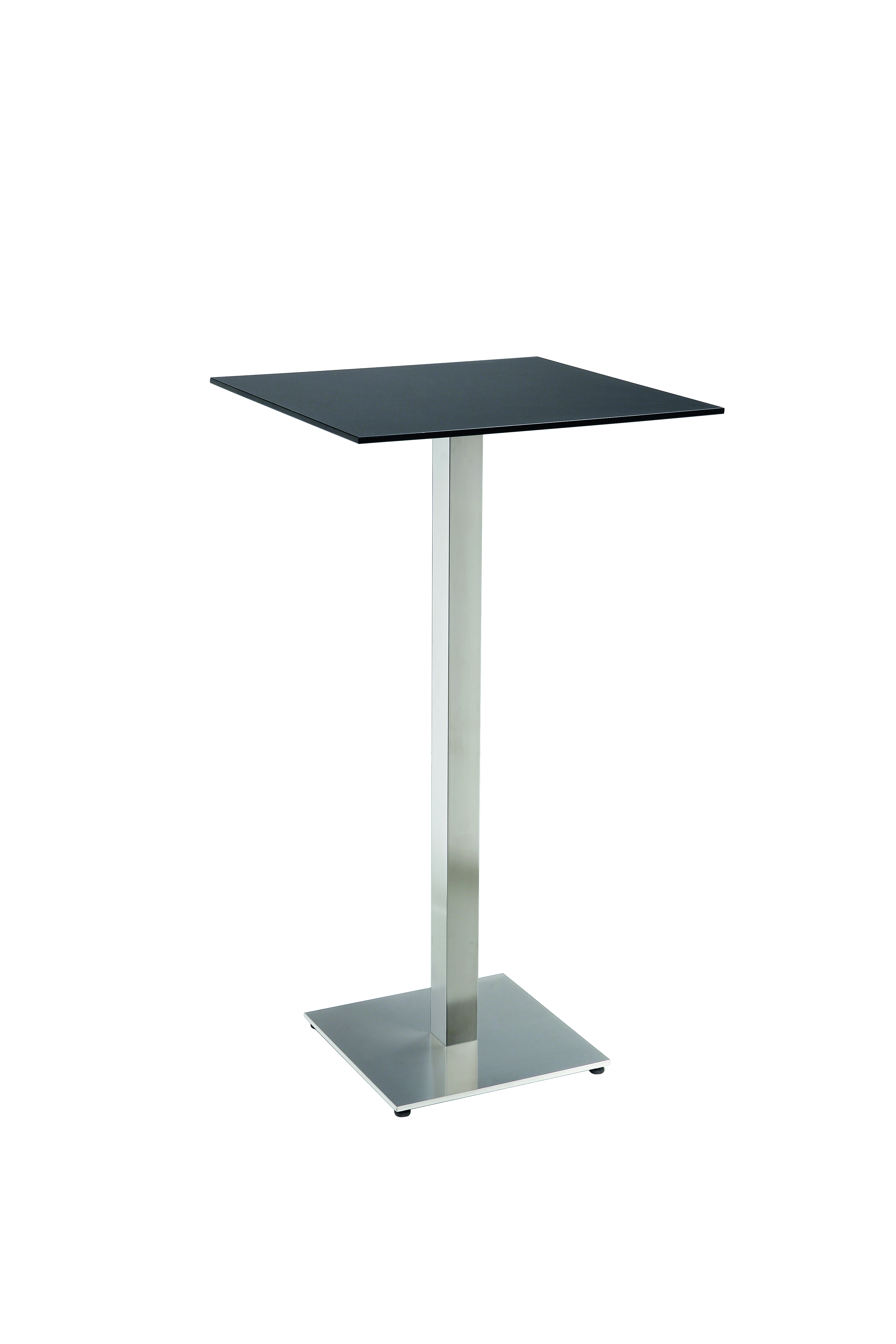 Top available in melamine, HPL or glass, round or square. HPL top is suitable for outdoor use.