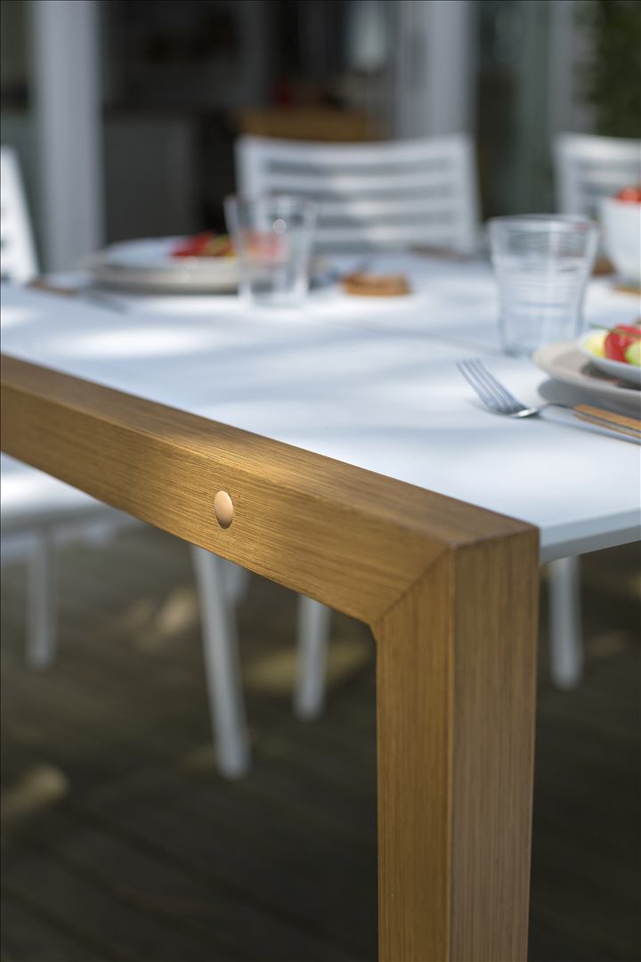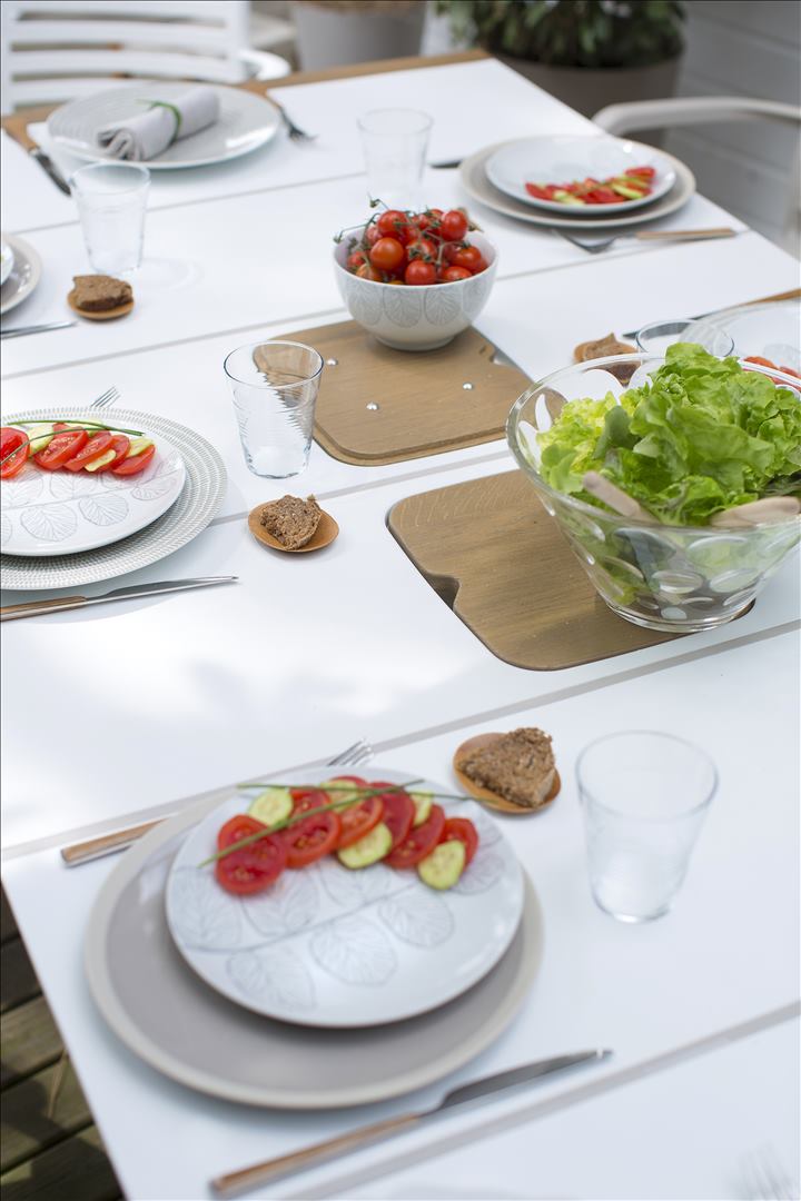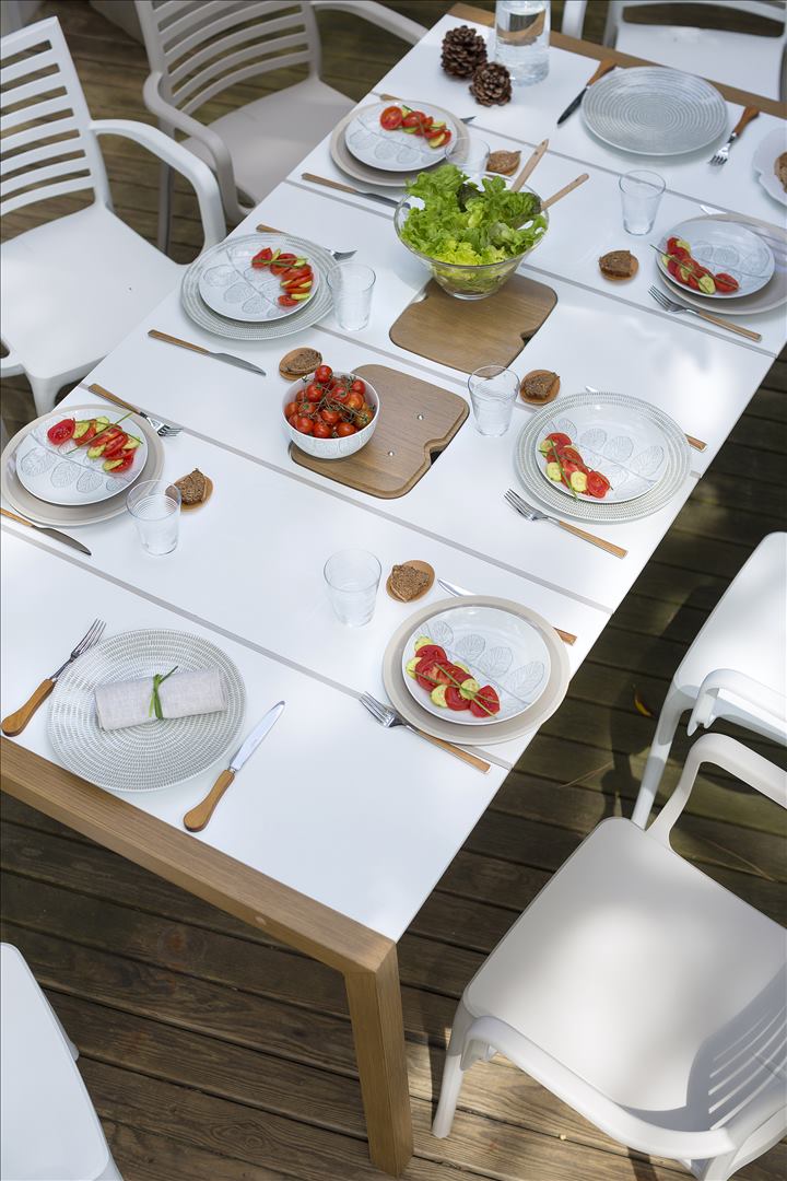 Designed for usability, the SUNDAY table offers elegant aluminium feet which allow a maximum of room for legs and an appetiser tray housed in the heart of table to start off the meal.