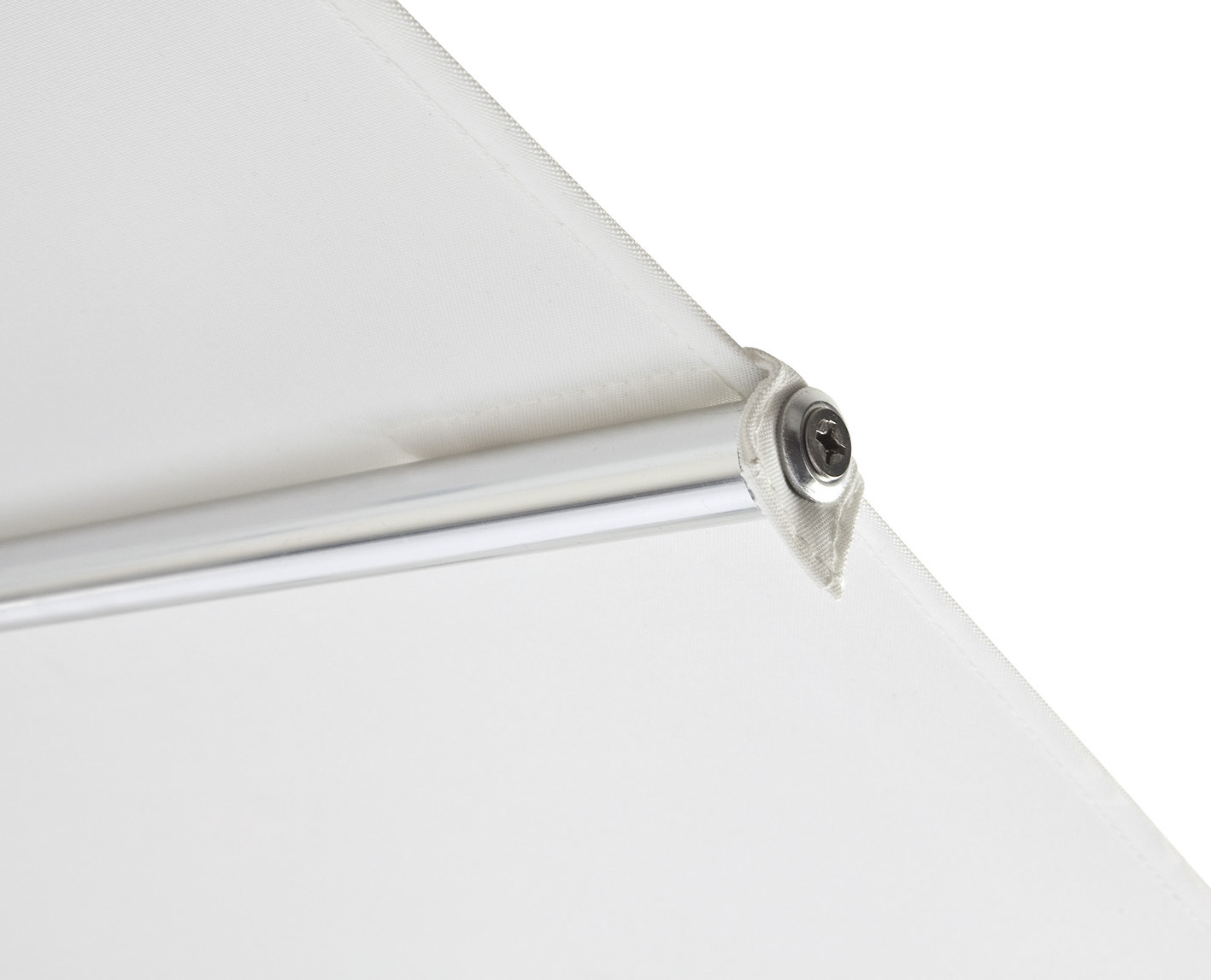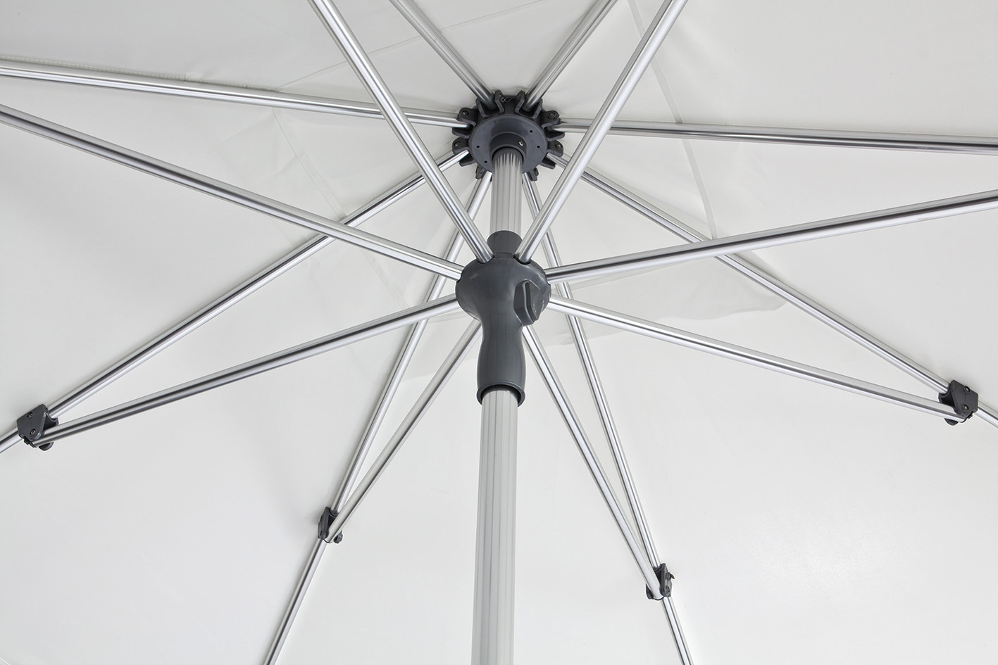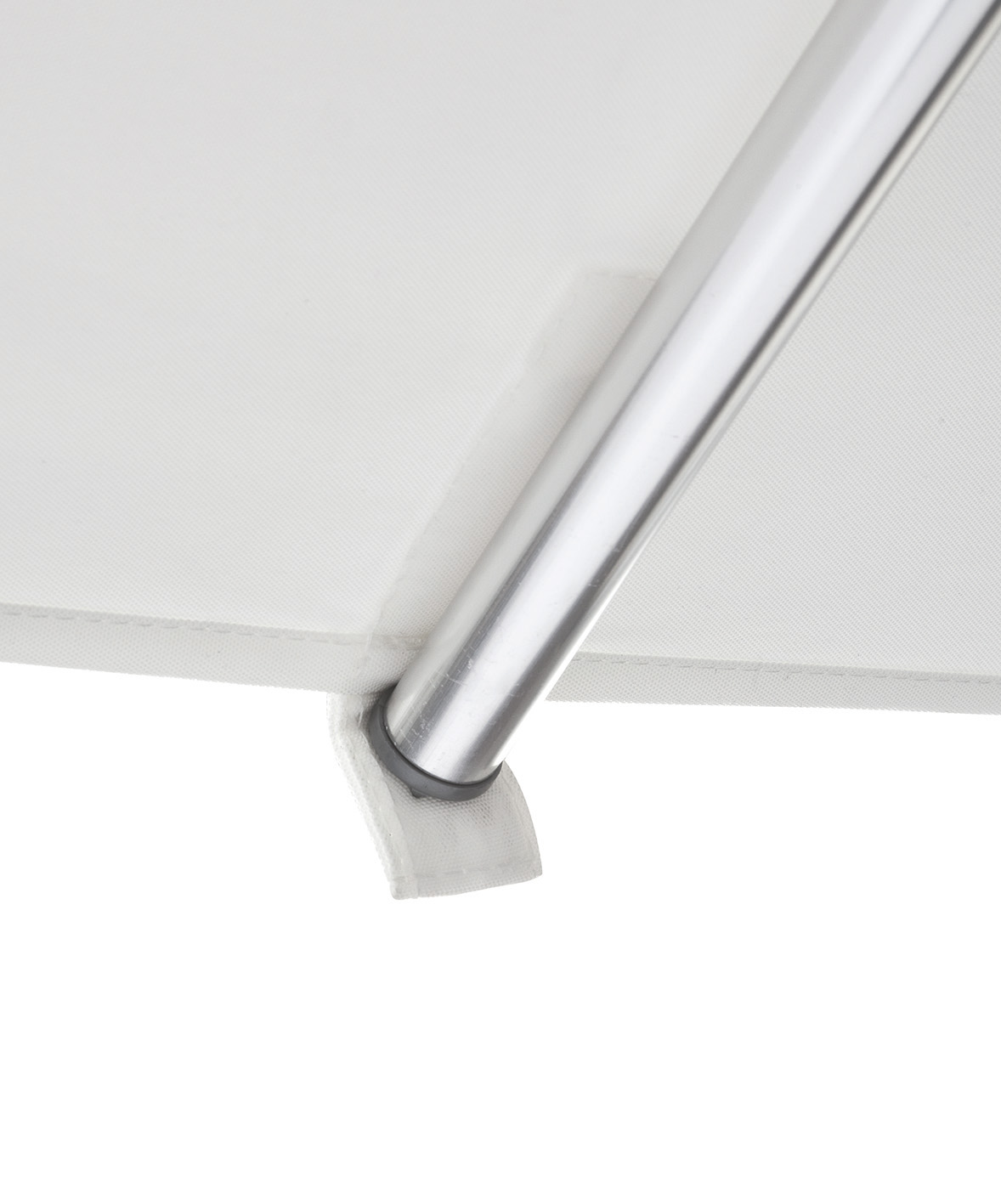 Anodised aluminium central pole and spines. White polyester 250 g/m² fabric treated with insect repellent.