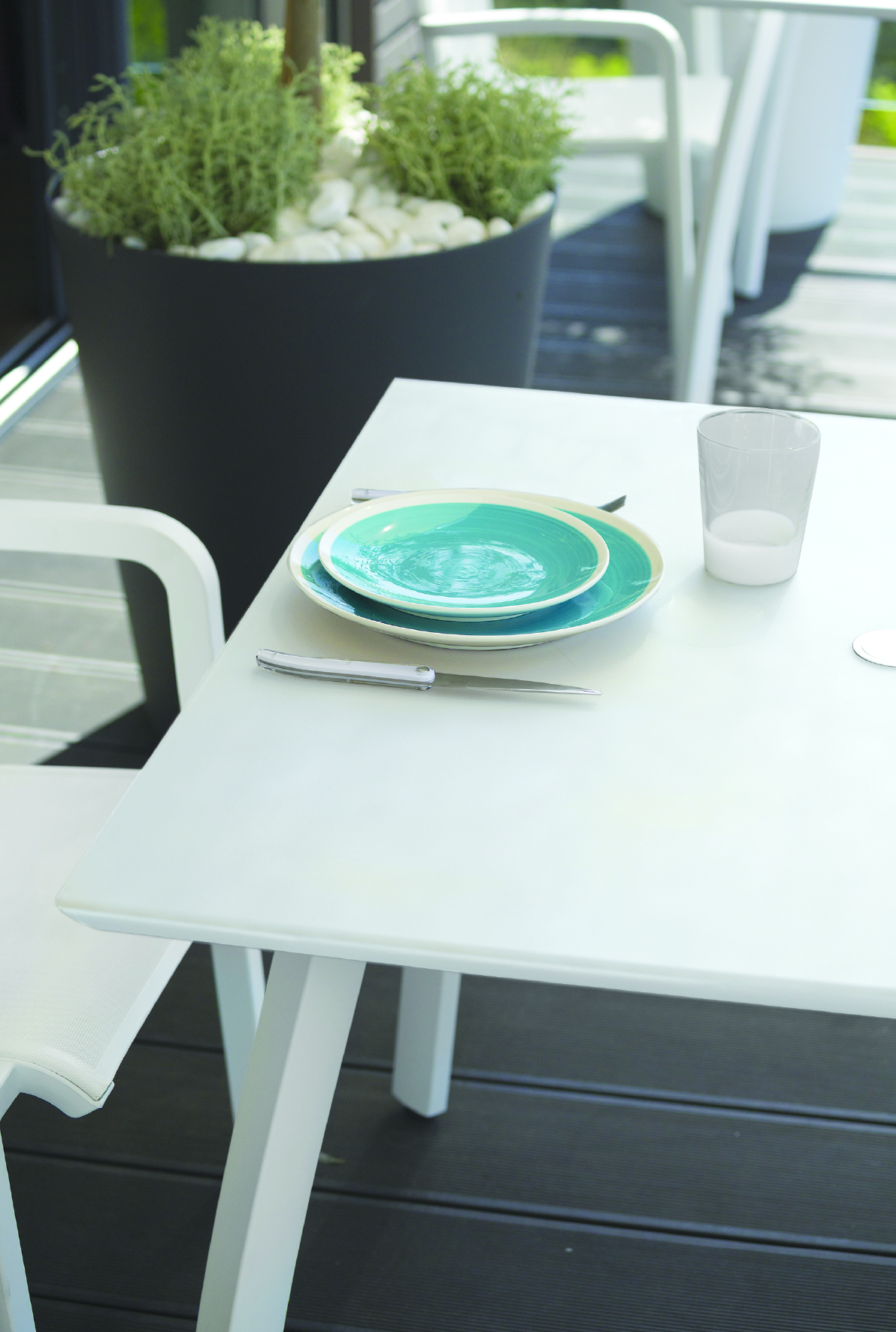 The centre of the table has a discreet hole of 45 mm diameter for a parasol or umbrella.