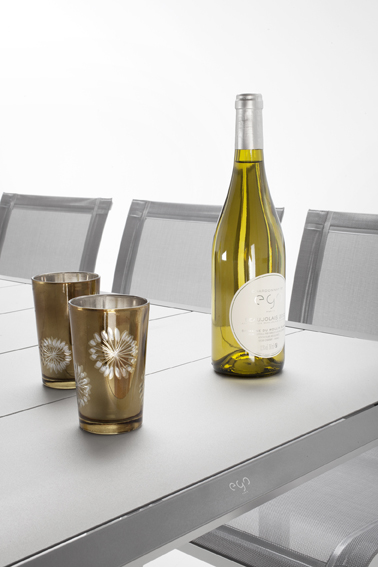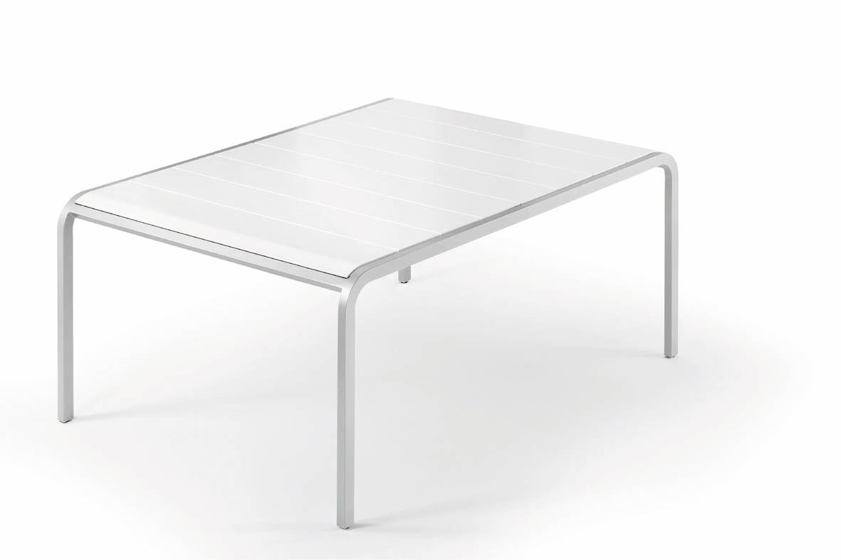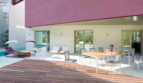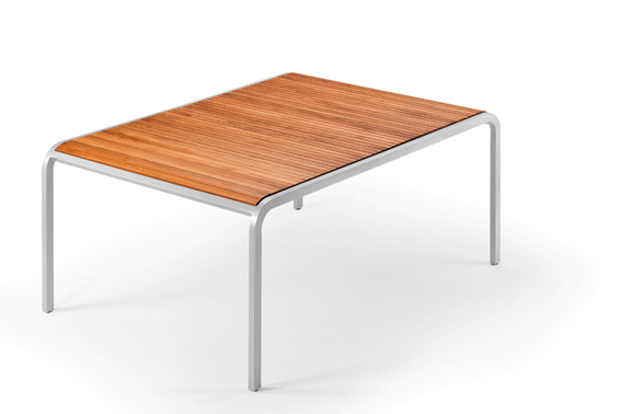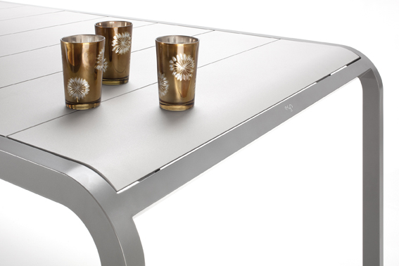 Table top in teak, Corian® or frozen aluminium (8 colours).