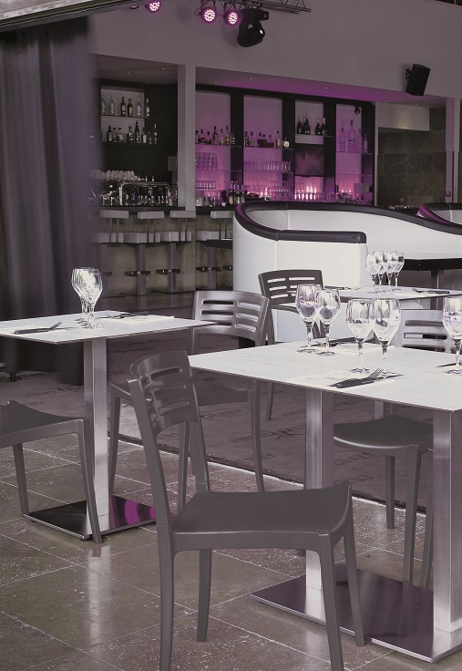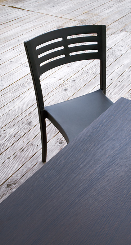 A chair with a contemporary look that is suited to urban spaces.