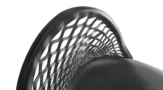 Seat padding in high density flexible polyurethane foam and moulded rigid polyurethane foam.